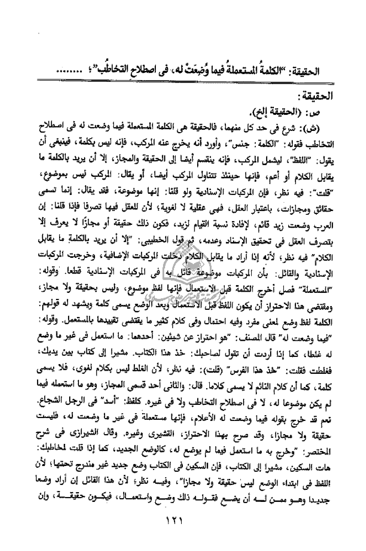 الكلمة المستعملة فيما وضعت له، فى اصطلاح التخاطب"؛ ...