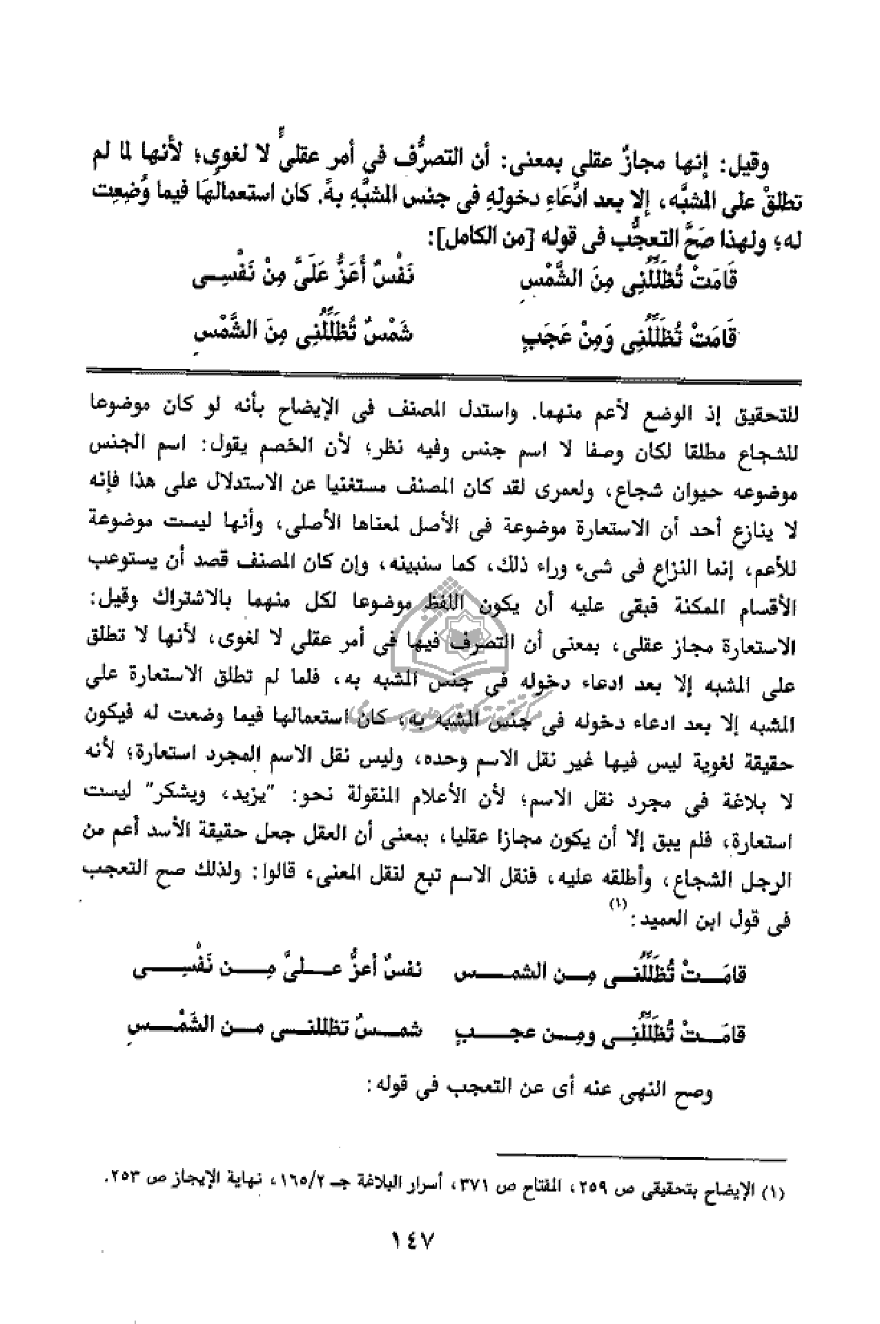 (¬1) الإيضاح بتحقيقى ص 259، المفتاح ص 371، أسرار البلاغة ج 2/ 165، نهاية الإيجاز ص 253.