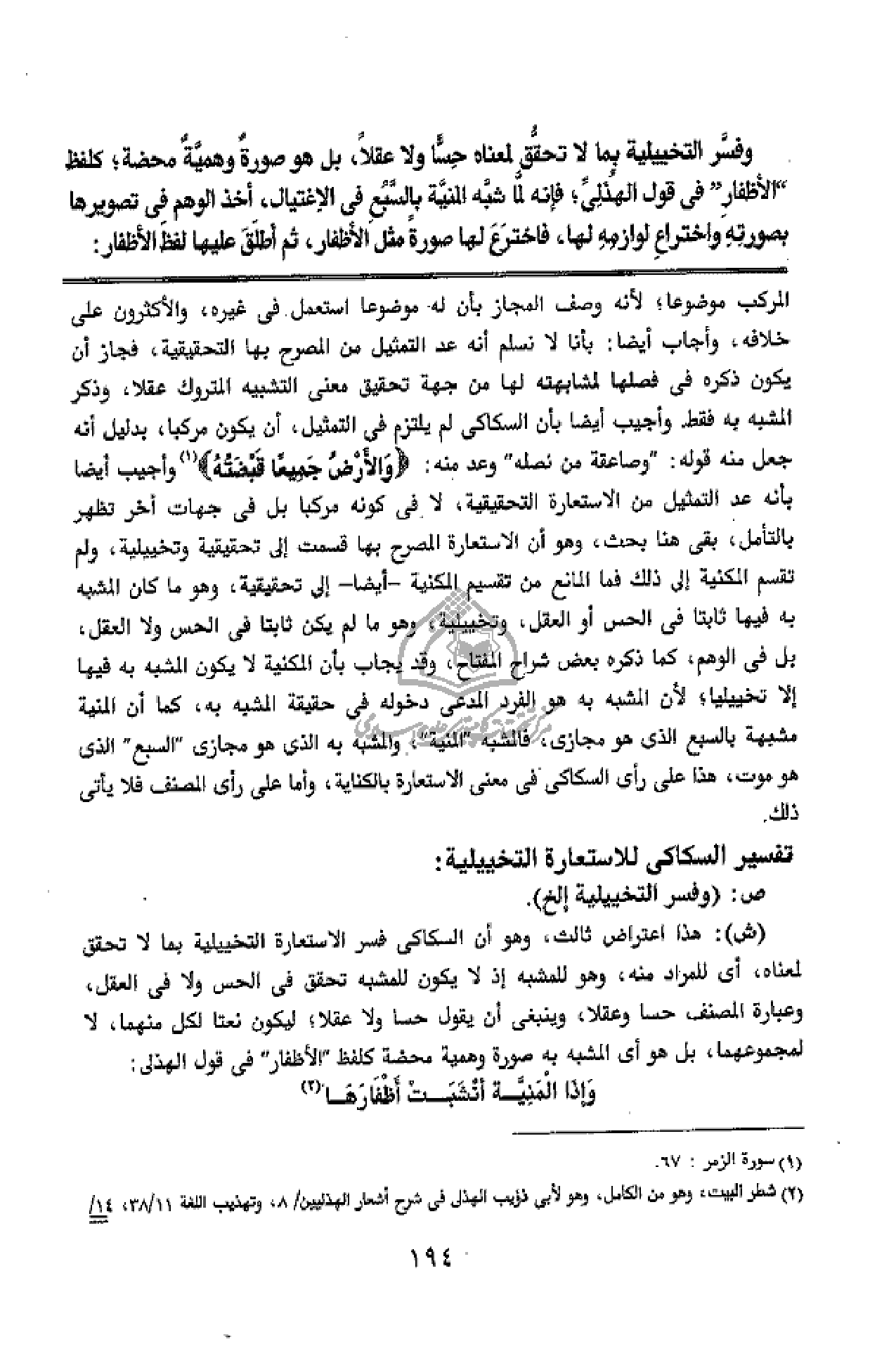 تفسير السكاكى للاستعارة التخييلية: ص: (وفسر التخييلية إلخ).