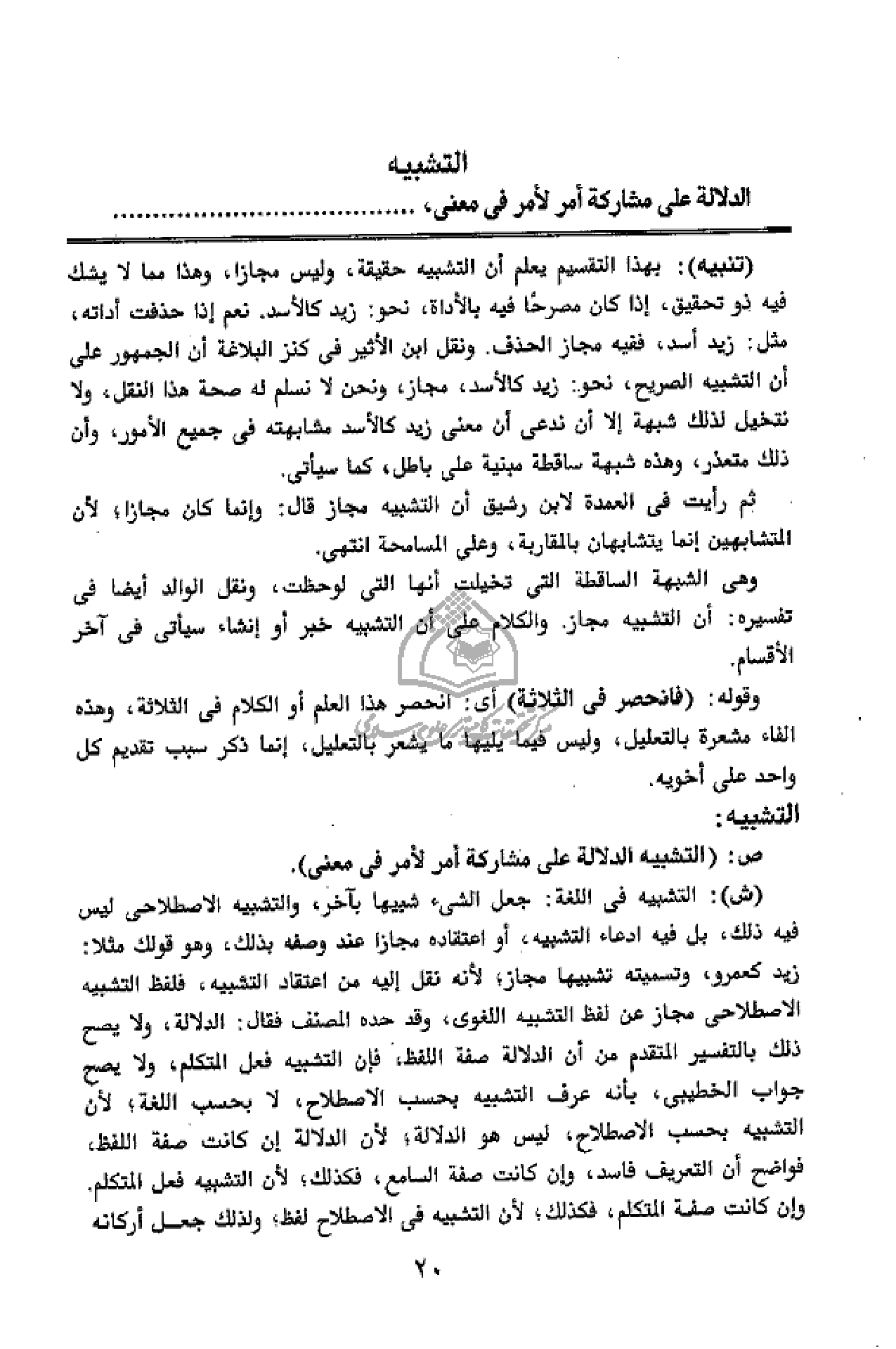 التشبيه: ص: (التشبيه الدلالة على مشاركة أمر لأمر فى معنى).