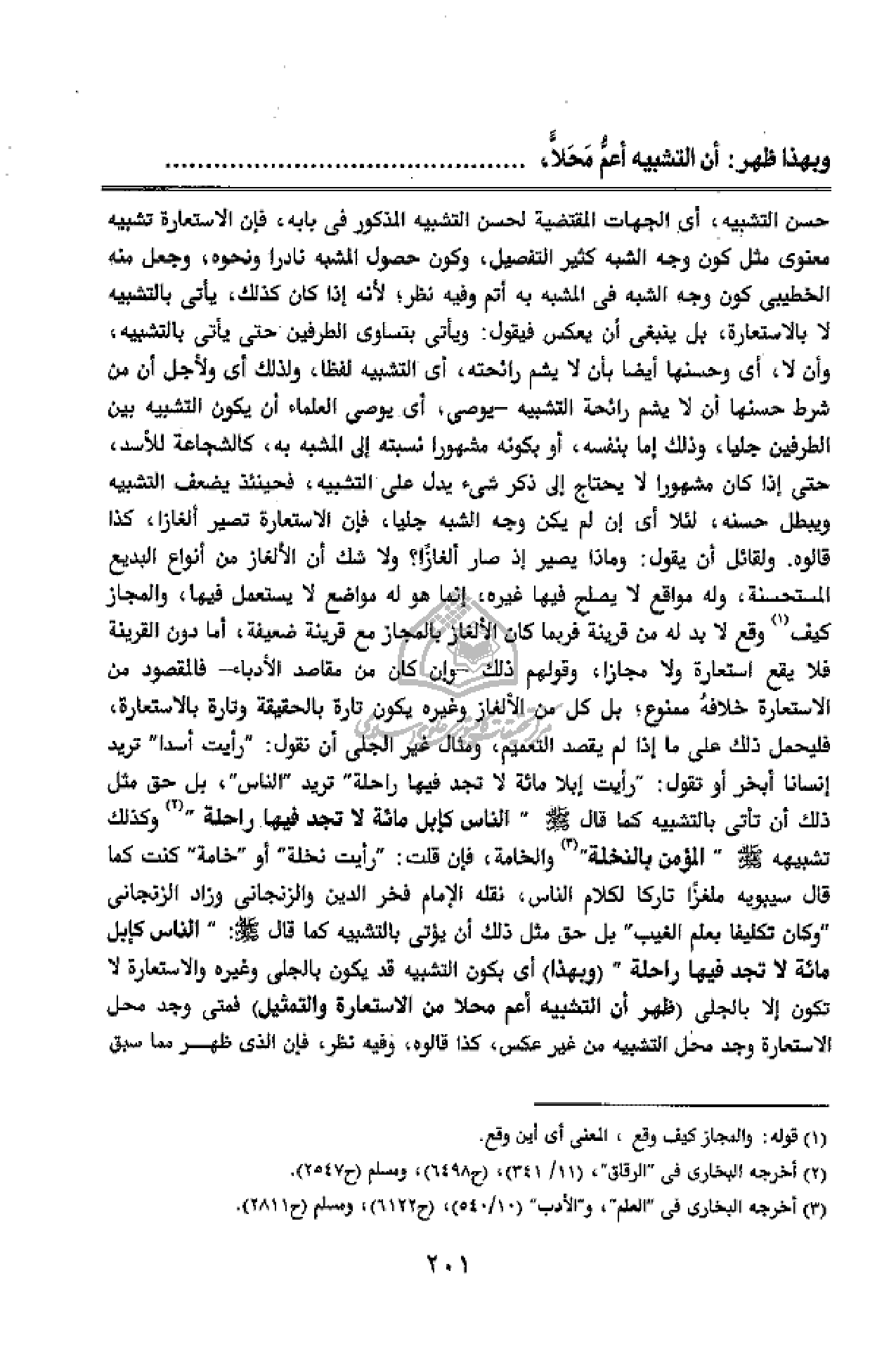 وبهذا ظهر: أن التشبيه أعمّ محلّا، ...