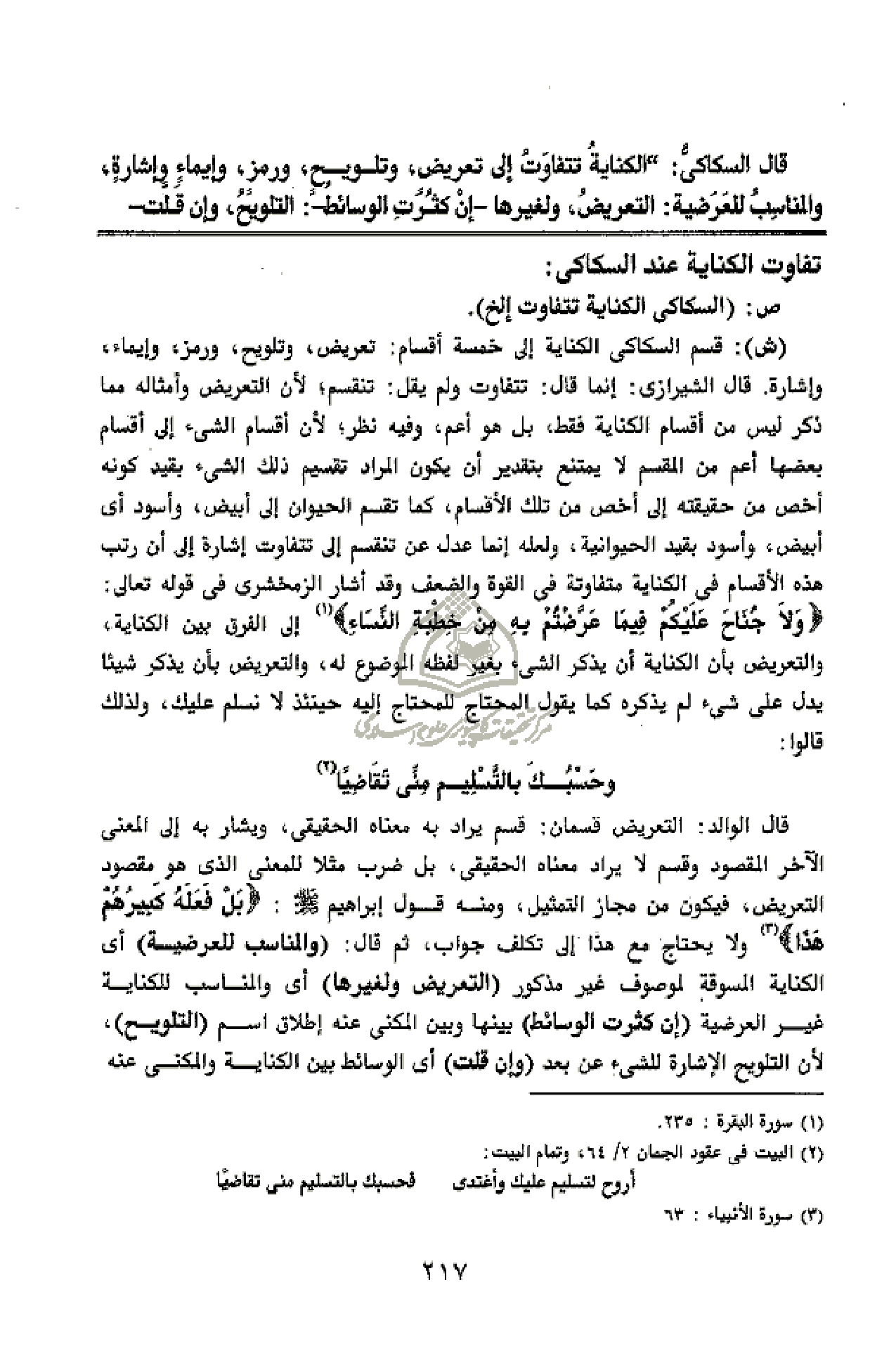 تفاوت الكناية عند السكاكى: ص: (السكاكى الكناية تتفاوت إلخ).
