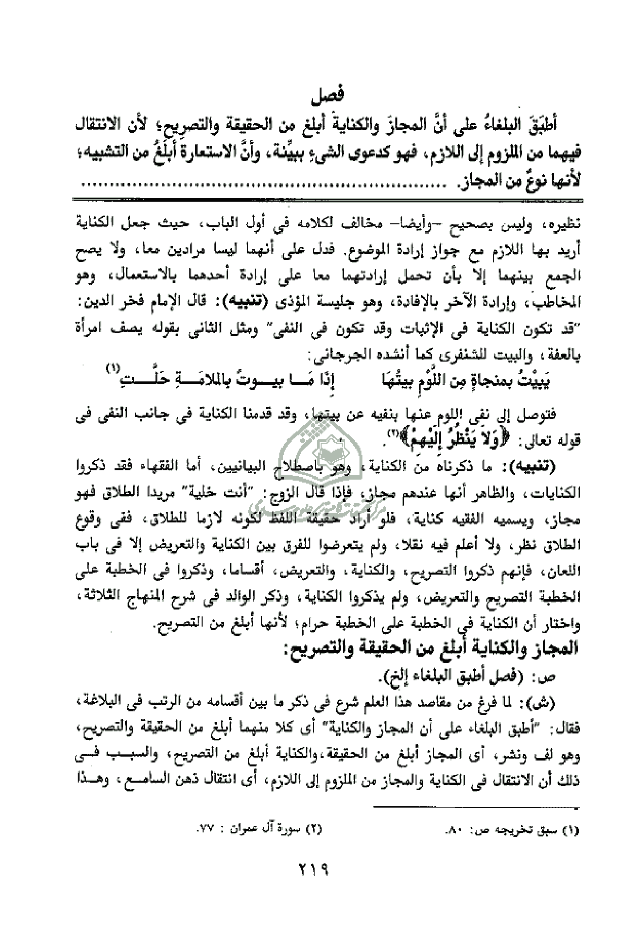 المجاز والكناية أبلغ من الحقيقة والتصريح: ص: (فصل أطبق البلغاء إلخ).