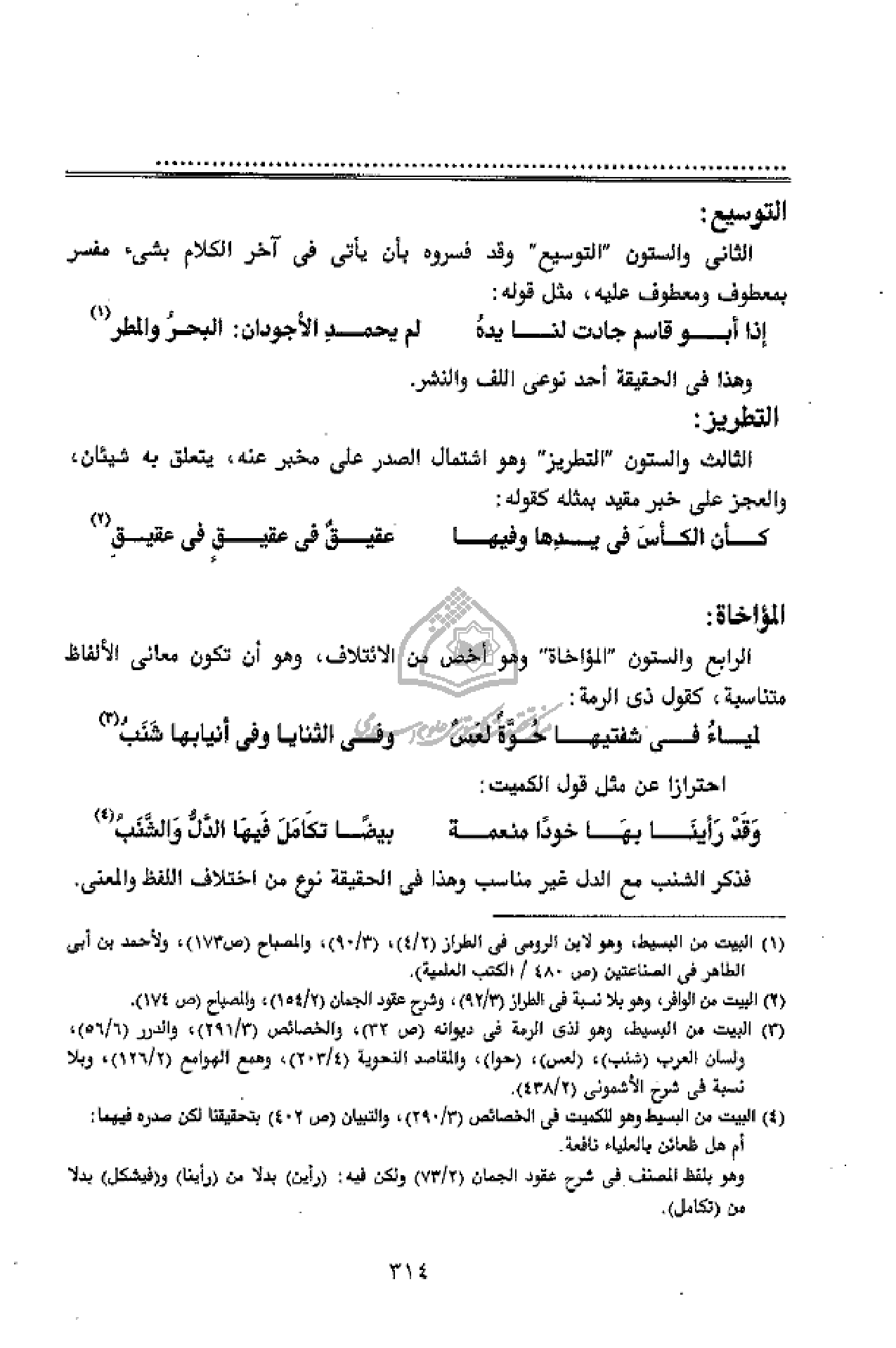 التوسيع: الثانى والستون" التوسيع" وقد فسروه بأن يأتى فى آخر الكلام بشئ مفسر بمعطوف ومعطوف عليه، مثل قوله: