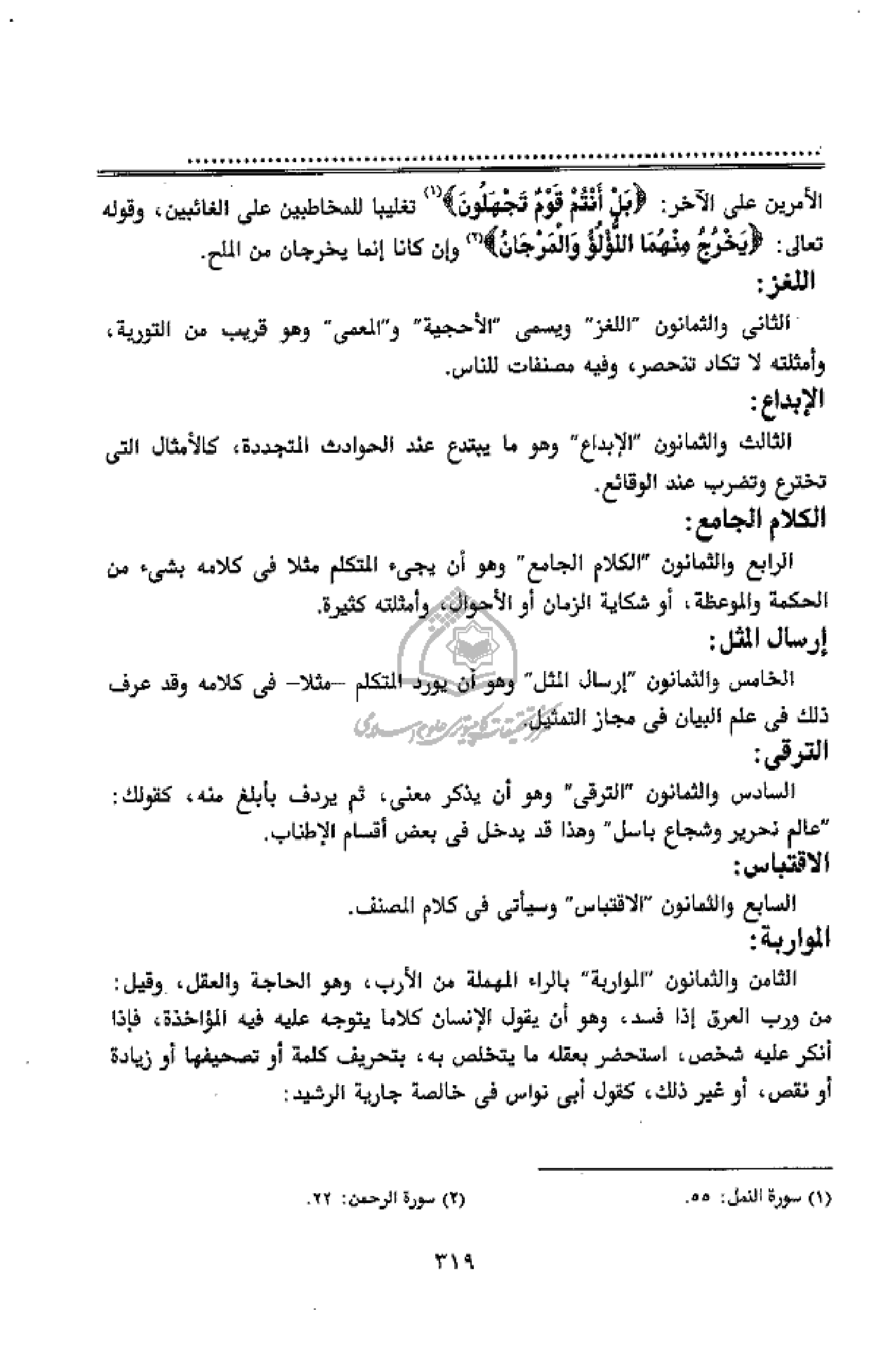 الاقتباس: السابع والثمانون" الاقتباس" وسيأتى فى كلام المصنف.
