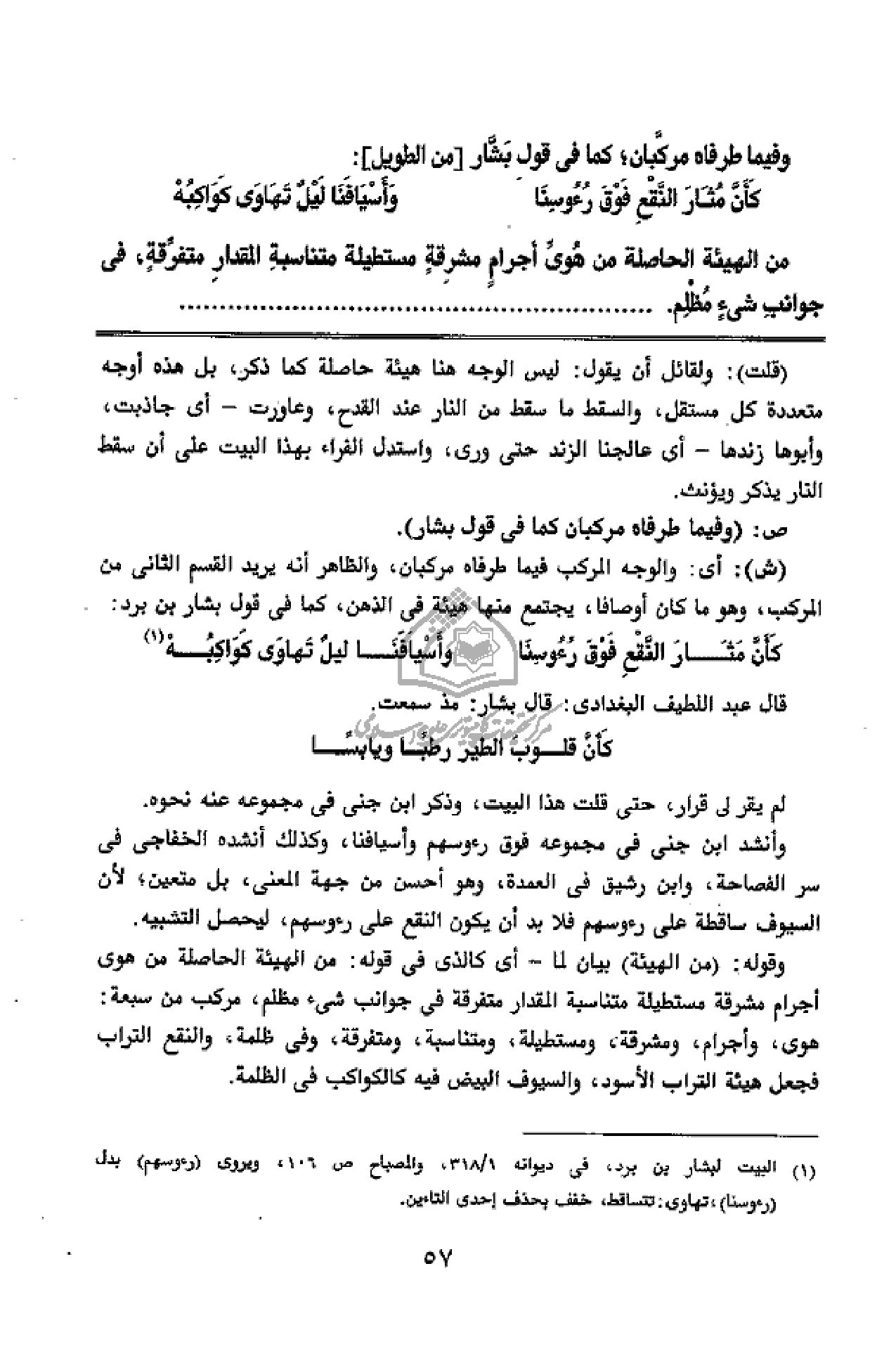 ص: (وفيما طرفاه مركبان كما فى قول بشار).
