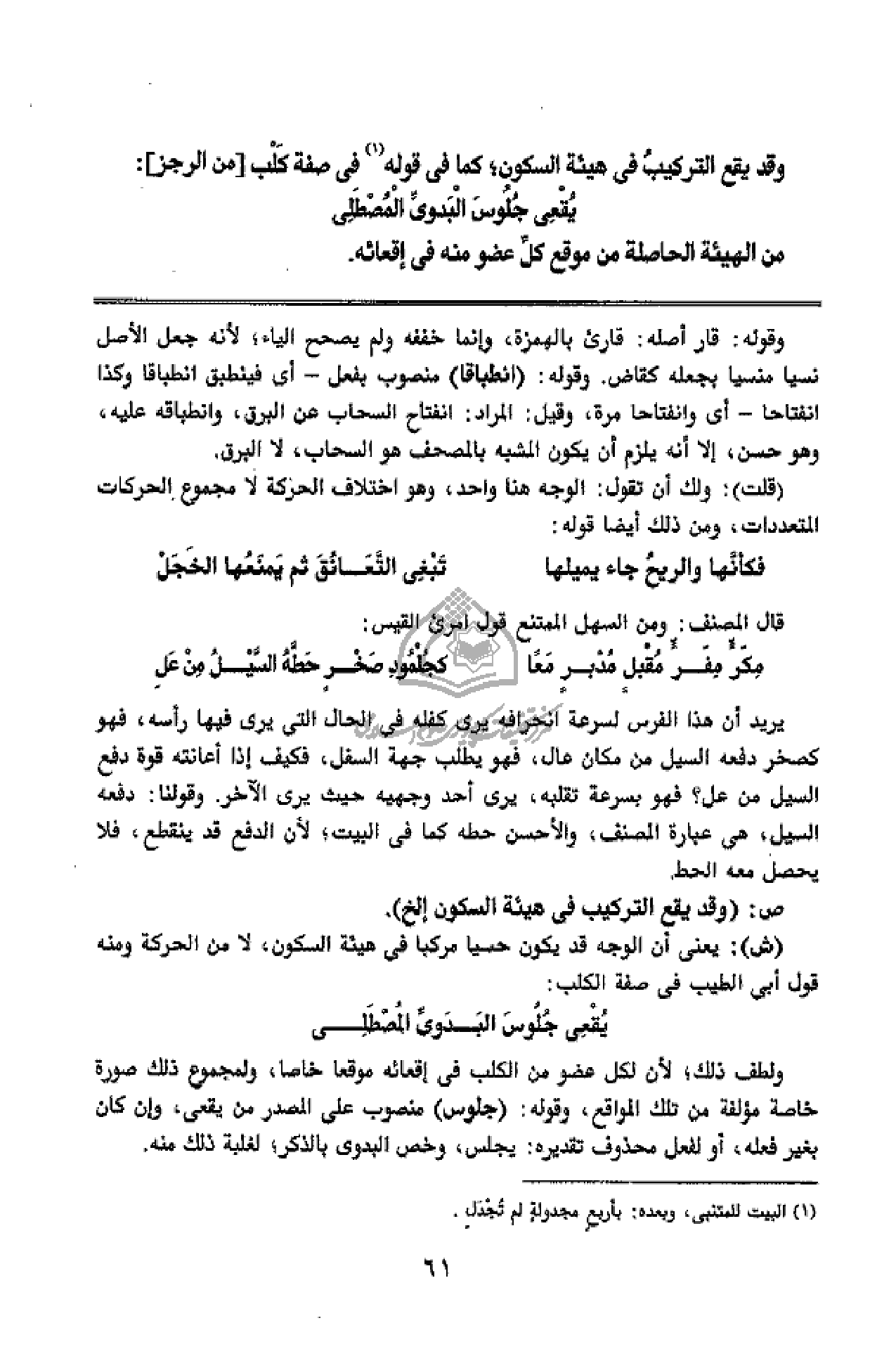 ص: (وقد يقع التركيب فى هيئة السكون إلخ).