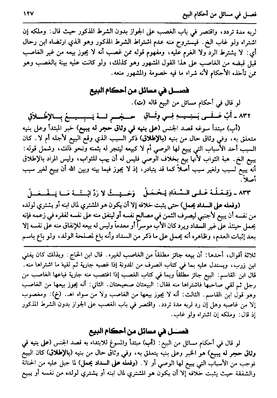 (فصل فِي مسَائِل من أَحْكَام البيع)