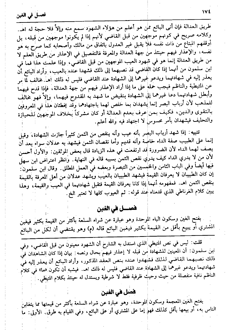 طَرِيق الْعَدَالَة فَإِن أَتَى البَائِع مِمَّن هُوَ أعلم من هَؤُلَاءِ الشُّهُود سمع مِنْهُ وإلاَّ فَلَا حجَّة لَهُ اه. وَكَلَامه صَرِيح فِي كَونهم موجهين من قبل القَاضِي لأَنهم إِذا لم يَكُونُوا موجهين من قبله، بل أوقفهم الْمُبْتَاع من ذَات نَفسه فَلَا يقبل غير الْعُدُول بِاتِّفَاق من مَالك وَأَصْحَابه كَمَا صرح بِهِ هُوَ نَفسه، والإعذار فيهم حِينَئِذٍ من جِهَة الْعَدَالَة والمعرفة فالتفصيل فِي الْإِعْذَار من طَرِيق الْعلم لَا من طَرِيق الْعَدَالَة إِنَّمَا هُوَ فِي شُهُود الْعَيْب الموجهين من قبل القَاضِي، وَإِذا علمت هَذَا فَمَا فِي ابْن سَلمُون من أَنَّهُمَا إِذا كَانَ القَاضِي قد نصبهما إِلَى ذَلِك فشهدا عِنْده بِالْعَيْبِ، وَأَرَادَ البَائِع أَن يعْذر إِلَيْهِ فِي شَهَادَتهمَا وَيَدْعُو غَيرهمَا إِلَى الشَّهَادَة عِنْد القَاضِي فَلَيْسَ لَهُ ذَلِك اه. مُخَالف لما مر عَن الْمُتَيْطِيَّة والناظم فَيجب حمله على مَا إِذا أَرَادَ الْإِعْذَار فيهم من جِهَة الْعَدَالَة، فَإِذا قدح فيهمَا وأبطل شَهَادَتهمَا دَعَا غَيرهمَا إِلَى الشَّهَادَة بنقيض مَا شهد بِهِ المقدوح فيهمَا، وإلاَّ فَهُوَ مُخَالف للْمَذْهَب لِأَن أَرْبَاب الْبَصَر إِنَّمَا يَشْهَدَانِ بِمَا خلص لَهما باجتهادهما وَقد يخطئان هَذَا فِي المعروفين بالتقوى وَالدّين، فَكيف بِمن عرف بِعَدَمِ الْعَدَالَة أَو كَانَ مُشْركًا بِخِلَاف الموجهين للحيازة والتحليف فيشهدان بِأَمْر محسوس لَا اجْتِهَاد فِيهِ وَالله أعلم. تَنْبِيه: إِذا شهد أَرْبَاب الْبَصَر بِأَنَّهُ عيب وَأَنه ينقص من الثّمن كثيرا جَازَت الشَّهَادَة، وَقيل إِنَّمَا على الطَّبِيب صفة الدَّاء خَاصَّة وَأَنه قديم وَأما نُقْصَان الثّمن فَيشْهد بِهِ عَدْلَانِ سَوَاء بعد أَن يصف لَهما الدَّاء لِأَن الضَّرُورَة قد ارْتَفَعت فِي هَذِه الزِّيَادَة قَالَ بعض الموثقين: وَالْأول أحسن لِأَن من لَا يدْرِي الدَّاء كَيفَ يدْرِي نقص الثّمن بِسَبَبِهِ قَالَه فِي النِّهَايَة. وَانْظُر اعْتِرَاض ابْن سهل فِيهَا أَيْضا وَفِي الْبَاب الثَّامِن وَالْخمسين من التَّبْصِرَة وَبَعضه فِي الْعَمَل الْمُطلق. وَقَالَ ابْن سَلمُون: إِن كَانَ الطبيبان لَا يعرفان الْقيمَة فَيشْهد الطبيبان بِالْعَيْبِ وَيشْهد عَدْلَانِ من أهل الْمعرفَة بِالْقيمَةِ بِنَقص الثّمن اه. فمفهومه أَنَّهُمَا إِذا كَانَا يعرفان الْقيمَة فَتقبل شَهَادَتهمَا فِي الْعَيْب وَالْقيمَة، وَهَذَا يبين كَلَام الغرناطي الَّذِي قدمْنَاهُ عِنْد قَوْله: ثمَّ الْعُيُوب كلهَا لَا تعْتَبر الخ.