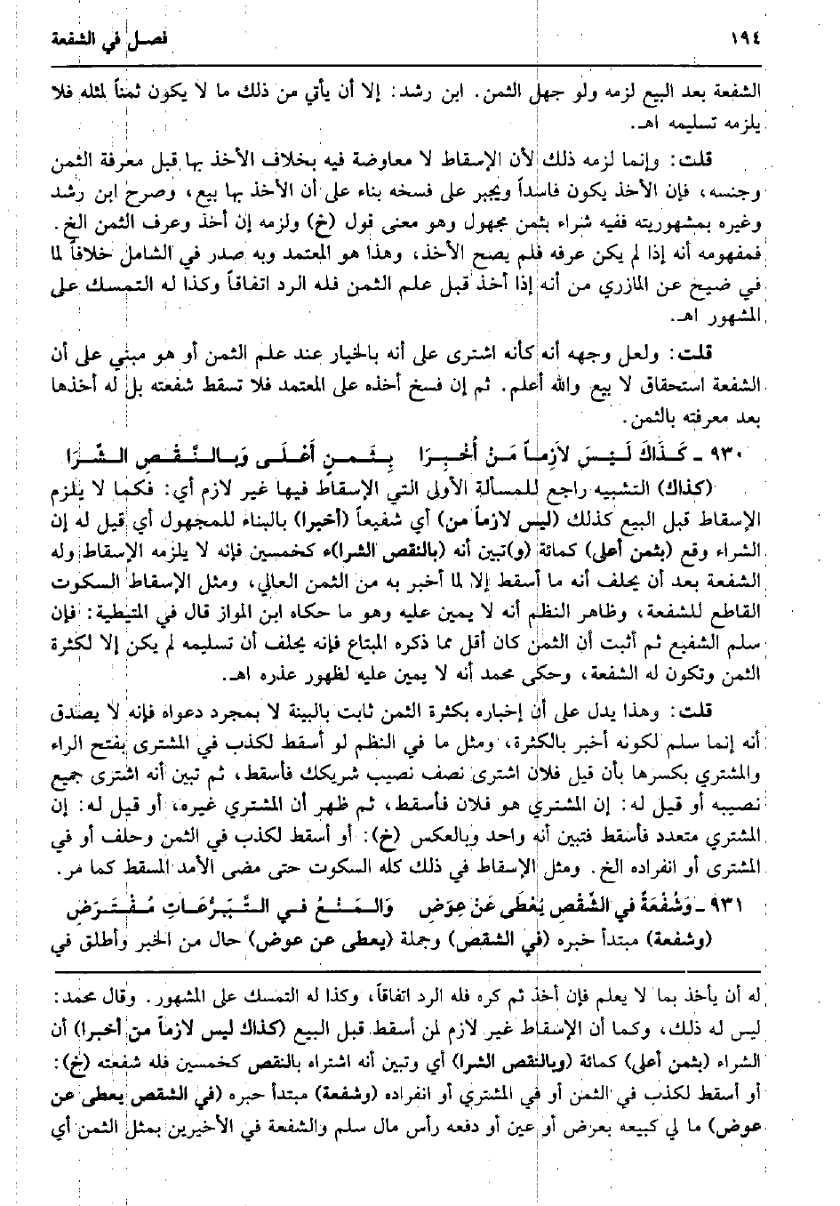 الشُّفْعَة بعد البيع لزمَه وَلَو جهل الثّمن. ابْن رشد: إِلَّا أَن يَأْتِي من ذَلِك مَا لَا يكون ثمنا لمثله فَلَا يلْزمه تَسْلِيمه اه. قلت: وَإِنَّمَا لزمَه ذَلِك لِأَن الْإِسْقَاط لَا مُعَاوضَة فِيهِ بِخِلَاف الْأَخْذ بهَا قبل معرفَة الثّمن وجنسه، فَإِن الْأَخْذ يكون فَاسِدا وَيجْبر على فَسخه بِنَاء على أَن الْأَخْذ بهَا بيع، وَصرح ابْن رشد وَغَيره بمشهوريته فَفِيهِ شِرَاء بِثمن مَجْهُول وَهُوَ معنى قَول (خَ) وَلَزِمَه إِن أَخذ وَعرف الثّمن الخ. فمفهومه أَنه إِذا لم يكن عرفه فَلم يَصح الْأَخْذ، وَهَذَا هُوَ الْمُعْتَمد وَبِه صدر فِي الشَّامِل خلافًا لما فِي ضيح عَن الْمَازرِيّ من أَنه إِذا أَخذ قبل علم الثّمن فَلهُ الرَّد اتِّفَاقًا وَكَذَا لَهُ التَّمَسُّك على الْمَشْهُور اه. قلت: وَلَعَلَّ وَجهه أَنه كَأَنَّهُ اشْترى على أَنه بِالْخِيَارِ عِنْد علم الثّمن أَو هُوَ مَبْنِيّ على أَن الشُّفْعَة اسْتِحْقَاق لَا بيع وَالله أعلم. ثمَّ إِن فسخ أَخذه على الْمُعْتَمد فَلَا تسْقط شفعته بل لَهُ أَخذهَا بعد مَعْرفَته بِالثّمن. كَذَاكَ لَيْسَ لاَزِماً مَنْ أُخْبِرَا بِثَمنٍ أَعْلَى وَبالنَّقْصِ الشِّرَا (كَذَاك) التَّشْبِيه رَاجع للمسألة الأولى الَّتِي الْإِسْقَاط فِيهَا غير لَازم أَي: فَكَمَا لَا يلْزم الْإِسْقَاط قبل البيع كَذَلِك (لَيْسَ لَازِما من) أَي شَفِيعًا (أخبرا) بِالْبِنَاءِ للْمَجْهُول أَي قيل لَهُ إِن الشِّرَاء وَقع (بِثمن أَعلَى) كمائة (و) تبين أَنه (بِالنَّقْصِ الشرا) ء كخمسين فَإِنَّهُ لَا يلْزمه الْإِسْقَاط وَله الشُّفْعَة بعد أَن يحلف أَنه مَا أسقط إِلَّا لما أخبر بِهِ من الثّمن العالي، وَمثل الْإِسْقَاط السُّكُوت الْقَاطِع للشفعة، وَظَاهر النّظم أَنه لَا يَمِين عَلَيْهِ وَهُوَ مَا حَكَاهُ ابْن الْمَوَّاز قَالَ فِي الْمُتَيْطِيَّة: فَإِن سلم الشَّفِيع ثمَّ أثبت أَن الثّمن كَانَ أقل مِمَّا ذكره الْمُبْتَاع فَإِنَّهُ يحلف أَن تَسْلِيمه لم يكن إِلَّا لِكَثْرَة الثّمن وَتَكون لَهُ الشُّفْعَة، وَحكى مُحَمَّد أَنه لَا يَمِين عَلَيْهِ لظُهُور عذره اه. قلت: وَهَذَا يدل على أَن إخْبَاره بِكَثْرَة الثّمن ثَابت بِالْبَيِّنَةِ لَا بِمُجَرَّد دَعْوَاهُ فَإِنَّهُ لَا يصدق أَنه إِنَّمَا سلم لكَونه أخبر بِالْكَثْرَةِ، وَمثل مَا فِي النّظم لَو أسقط لكذب فِي الْمُشْتَرى بِفَتْح الرَّاء وَالْمُشْتَرِي بِكَسْرِهَا بِأَن قيل فلَان اشْترى نصف نصيب شريكك فأسقط، ثمَّ تبين أَنه اشْترى جَمِيع نصِيبه أَو قيل لَهُ: إِن المُشْتَرِي هُوَ فلَان فأسقط، ثمَّ ظهر أَن المُشْتَرِي غَيره، أَو قيل لَهُ: إِن المُشْتَرِي مُتَعَدد فأسقط فَتبين أَنه وَاحِد وَبِالْعَكْسِ (خَ) : أَو أسقط لكذب فِي الثّمن وَحلف أَو فِي الْمُشْتَرى أَو انْفِرَاده الخ. وَمثل الْإِسْقَاط فِي ذَلِك كُله السُّكُوت حَتَّى مضى الأمد الْمسْقط كَمَا مر. وَشُفْعَةٌ فِي الشِّقْصِ يُعْطَى عَنْ عِوَضِ وَالمَنْعُ فِي التَّبَرُّعَاتِ مُفْتَرَضِ (وشفعة) مُبْتَدأ خَبره (فِي الشّقص) وَجُمْلَة (يعْطى عَن عوض) حَال من الْخَبَر وَأطلق فِي