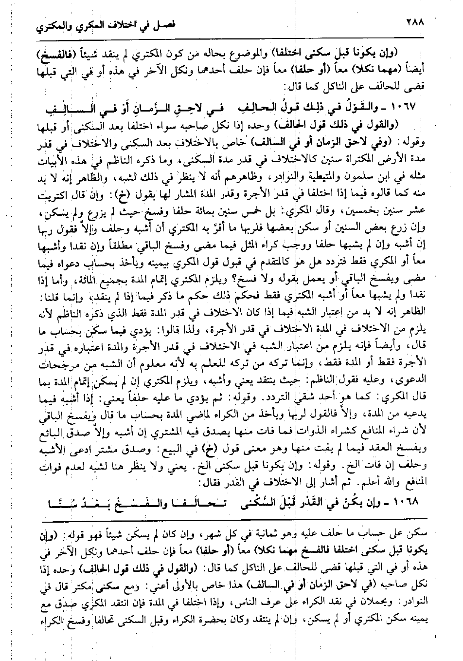 (وَإِن يَكُونَا قبل سُكْنى اخْتلفَا) والموضوع بِحَالهِ من كَون الْمُكْتَرِي لم ينْقد شَيْئا (فالفسخ) أَيْضا (مهما نكلا) مَعًا (أَو حلفا) مَعًا فَإِن حلف أَحدهمَا وَنكل الآخر فِي هَذِه أَو فِي الَّتِي قبلهَا قضى للْحَالِف على الناكل كَمَا قَالَ: والقَوْلُ فِي ذلِك قولُ الحالِفِ فِي لاحِقِ الزَّمانِ أَوْ فِي السالِفِ (وَالْقَوْل فِي ذَلِك قَول الْحَالِف) وَحده إِذا نكل صَاحبه سَوَاء اخْتلفَا بعد السُّكْنَى أَو قبلهَا وَقَوله: (وَفِي لَاحق الزَّمَان أَو فِي السالف) خَاص بالاختلاف بعد السُّكْنَى وَالِاخْتِلَاف فِي قدر مُدَّة الأَرْض المكتراة سِنِين كالاختلاف فِي قدر مُدَّة السُّكْنَى، وَمَا ذكره النَّاظِم فِي هَذِه الأبيات مثله فِي ابْن سَلمُون والمتيطية والنوادر، وظاهرهم أَنه لَا ينظر فِي ذَلِك لشبه، وَالظَّاهِر إِنَّه لَا بُد مِنْهُ كَمَا قَالُوهُ فِيمَا إِذا اخْتلفَا فِي قدر الْأُجْرَة وَقدر الْمدَّة الْمشَار لَهَا بقول (خَ) : وَإِن قَالَ اكتريت عشر سِنِين بِخَمْسِينَ، وَقَالَ الْمكْرِي: بل خمس سِنِين بِمِائَة حلفا وَفسخ حَيْثُ لم يزرع وَلم يسكن، وَإِن زرع بعض السنين أَو سكن بَعْضهَا فلربها مَا أقرَّ بِهِ الْمُكْتَرِي أَن أشبه وَحلف وإلاَّ فَقَوْل رَبهَا إِن أشبه وَإِن لم يشبها حلفا وَوَجَب كِرَاء الْمثل فِيمَا مضى وَفسخ الْبَاقِي مُطلقًا وَإِن نَقْدا وأشبها مَعًا أَو الْمكْرِي فَقَط فتردد هَل هُوَ كالمتقدم فِي قبُول قَول الْمكْرِي بِيَمِينِهِ وَيَأْخُذ بِحِسَاب دَعْوَاهُ فِيمَا مضى وَيفْسخ الْبَاقِي أَو يعْمل بقوله وَلَا فسخ؟ وَيلْزم الْمُكْتَرِي إتْمَام الْمدَّة بِجَمِيعِ الْمِائَة، وَأما إِذا نَقْدا وَلم يشبها مَعًا أَو أشبه الْمُكْتَرِي فَقَط فَحكم ذَلِك حكم مَا ذكر فِيمَا إِذا لم ينْقد، وَإِنَّمَا قُلْنَا: الظَّاهِر إِنَّه لَا بُد من اعْتِبَار الشّبَه فِيمَا إِذا كَانَ الِاخْتِلَاف فِي قدر الْمدَّة فَقَط الَّذِي ذكره النَّاظِم لِأَنَّهُ يلْزم من الِاخْتِلَاف فِي الْمدَّة الِاخْتِلَاف فِي قدر الْأُجْرَة، وَلذَا قَالُوا: يُؤَدِّي فِيمَا سكن بِحِسَاب مَا قَالَ، وَأَيْضًا فَإِنَّهُ يلْزم من اعْتِبَار الشّبَه فِي الِاخْتِلَاف فِي قدر الْأُجْرَة والمدة اعْتِبَاره فِي قدر الْأُجْرَة فَقَط أَو الْمدَّة فَقَط وَإِنَّمَا تَركه من تَركه للْعلم بِهِ لِأَنَّهُ مَعْلُوم أَن الشّبَه من مرجحات الدَّعْوَى، وَعَلِيهِ فَقَوْل النَّاظِم: حَيْثُ ينْتَقد يَعْنِي وأشبه، وَيلْزم الْمُكْتَرِي إِن لم يسكن إتْمَام الْمدَّة بِمَا قَالَ الْمكْرِي: كَمَا هُوَ أحد شقي التَّرَدُّد. وَقَوله: ثمَّ يُؤَدِّي مَا عَلَيْهِ حلفا يَعْنِي: إِذا أشبه فِيمَا يَدعِيهِ من الْمدَّة، وإلاَّ فَالْقَوْل لِرَبِّهَا وَيَأْخُذ من الْكِرَاء لماضي الْمدَّة بِحِسَاب مَا قَالَ وَيفْسخ الْبَاقِي لِأَن شِرَاء الْمَنَافِع كَشِرَاء الذوات فَمَا فَاتَ مِنْهَا يصدق فِيهِ المُشْتَرِي إِن أشبه وإلاَّ صدق البَائِع وَيفْسخ العقد فِيمَا لم يفت مِنْهَا وَهُوَ معنى قَول (خَ) فِي البيع: وَصدق مُشْتَر ادّعى الْأَشْبَه وَحلف إِن فَاتَ الخ. وَقَوله: وَإِن يَكُونَا قبل سُكْنى الخ. يَعْنِي وَلَا ينظر هُنَا لشبه لعدم فَوَات الْمَنَافِع وَالله أعلم. ثمَّ أَشَارَ إِلَى الِاخْتِلَاف فِي الْقدر فَقَالَ: وَإِن يكُنْ فِي القَدْر قَبْلَ السُّكْنى تحالَفا والفَسْخُ بَعْدُ سُنَّا