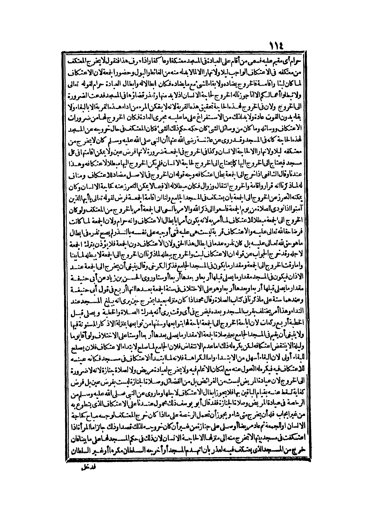 وَهُوَ عَلَى الِاخْتِلَافِ فِي سُنَّةِ الْجُمُعَةِ بَعْدَهَا أَنَّهَا أَرْبَعٌ فِي قَوْلِ أَبِي حَنِيفَةَ وَعِنْدَهُمَا: سِتَّةٌ عَلَى مَا ذَكَرْنَا فِي كِتَابِ الصَّلَاةِ وَقَالَ مُحَمَّدٌ: إذَا كَانَ مَنْزِلُهُ بَعِيدًا يَخْرُجُ حِينَ يَرَى أَنَّهُ يَبْلُغُ الْمَسْجِدَ عِنْدَ النِّدَاءِ وَهَذَا أَمْرٌ يَخْتَلِفُ بِقُرْبِ الْمَسْجِدِ وَبُعْدِهِ فَيَخْرُجُ فِي أَيِّ وَقْتٍ يَرَى أَنَّهُ يُدْرِكُ الصَّلَاةَ وَالْخُطْبَةَ وَيُصَلِّي قَبْلَ الْخُطْبَةِ أَرْبَعَ رَكَعَاتٍ؛ لِأَنَّ إبَاحَةَ الْخُرُوجِ إلَى الْجُمُعَةِ إبَاحَةٌ لَهَا بِتَوَابِعِهَا، وَسُنَنَهَا مِنْ تَوَابِعِهَا بِمَنْزِلَةِ الْأَذْكَارِ الْمَسْنُونَةِ فِيهَا وَلَا يَنْبَغِي أَنْ يُقِيمَ فِي الْمَسْجِدِ الْجَامِعِ بَعْدَ صَلَاةِ الْجُمُعَةِ إلَّا مِقْدَارَ مَا يُصَلِّي بَعْدَهَا أَرْبَعًا أَوْ سِتًّا عَلَى الِاخْتِلَافِ وَلَوْ أَقَامَ يَوْمًا وَلَيْلَةً لَا يُنْتَقَضُ اعْتِكَافُهُ، لَكِنْ يُكْرَهُ لَهُ ذَلِكَ أَمَّا عَدَمُ الِانْتِقَاضِ فَلِأَنَّ الْجَامِعَ لَمَّا صَلُحَ لِابْتِدَاءِ الِاعْتِكَافِ؛ فَلَأَنْ يَصْلُحَ لِلْبَقَاءِ أَوْلَى؛ لِأَنَّ الْبَقَاءَ أَسْهَلُ مِنْ الِابْتِدَاءِ وَأَمَّا الْكَرَاهَةُ؛ فَلِأَنَّهُ لَمَّا ابْتَدَأَ الِاعْتِكَافَ فِي مَسْجِدٍ؛ فَكَأَنَّهُ عَيَّنَهُ لِلِاعْتِكَافِ فِيهِ، فَيُكْرَهُ لَهُ التَّحَوُّلُ عَنْهُ مَعَ إمْكَانِ الْإِتْمَامِ فِيهِ وَلَا يَخْرُجُ لِعِيَادَةِ مَرِيضٍ وَلَا لِصَلَاةِ جِنَازَةٍ؛ لِأَنَّهُ لَا ضَرُورَةَ إلَى الْخُرُوجِ؛ لِأَنَّ عِيَادَةَ الْمَرِيضِ لَيْسَتْ مِنْ الْفَرَائِضِ، بَلْ مِنْ الْفَضَائِلِ وَصَلَاةُ الْجِنَازَةِ لَيْسَتْ بِفَرْضِ عَيْنٍ بَلْ فَرْضُ كِفَايَةٍ تَسْقُطُ عَنْهُ بِقِيَامِ الْبَاقِينَ بِهَا؛ فَلَا يَجُوزُ إبْطَالُ الِاعْتِكَافِ لِأَجْلِهَا وَمَا رُوِيَ عَنْ النَّبِيِّ - صَلَّى اللَّهُ عَلَيْهِ وَسَلَّمَ - مِنْ الرُّخْصَةِ فِي عِيَادَةِ الْمَرِيضِ وَصَلَاةِ الْجِنَازَةِ؛ فَقَدْ قَالَ أَبُو يُوسُفَ: ذَلِكَ مَحْمُولٌ عِنْدَنَا عَلَى الِاعْتِكَافِ الَّذِي يَتَطَوَّعُ بِهِ مِنْ غَيْرِ إيجَابٍ فَلَهُ أَنْ يَخْرُجَ مَتَى شَاءَ وَيَجُوزُ أَنْ تُحْمَلَ الرُّخْصَةُ عَلَى مَا إذَا كَانَ خَرَجَ الْمُعْتَكِفُ لِوَجْهٍ مُبَاحٍ كَحَاجَةِ الْإِنْسَانِ أَوْ لِلْجُمُعَةِ، ثُمَّ عَادَ مَرِيضًا أَوْ صَلَّى عَلَى جِنَازَةٍ مِنْ غَيْرِ أَنْ كَانَ خُرُوجُهُ لِذَلِكَ قَصْدًا وَذَلِكَ جَائِزٌ.