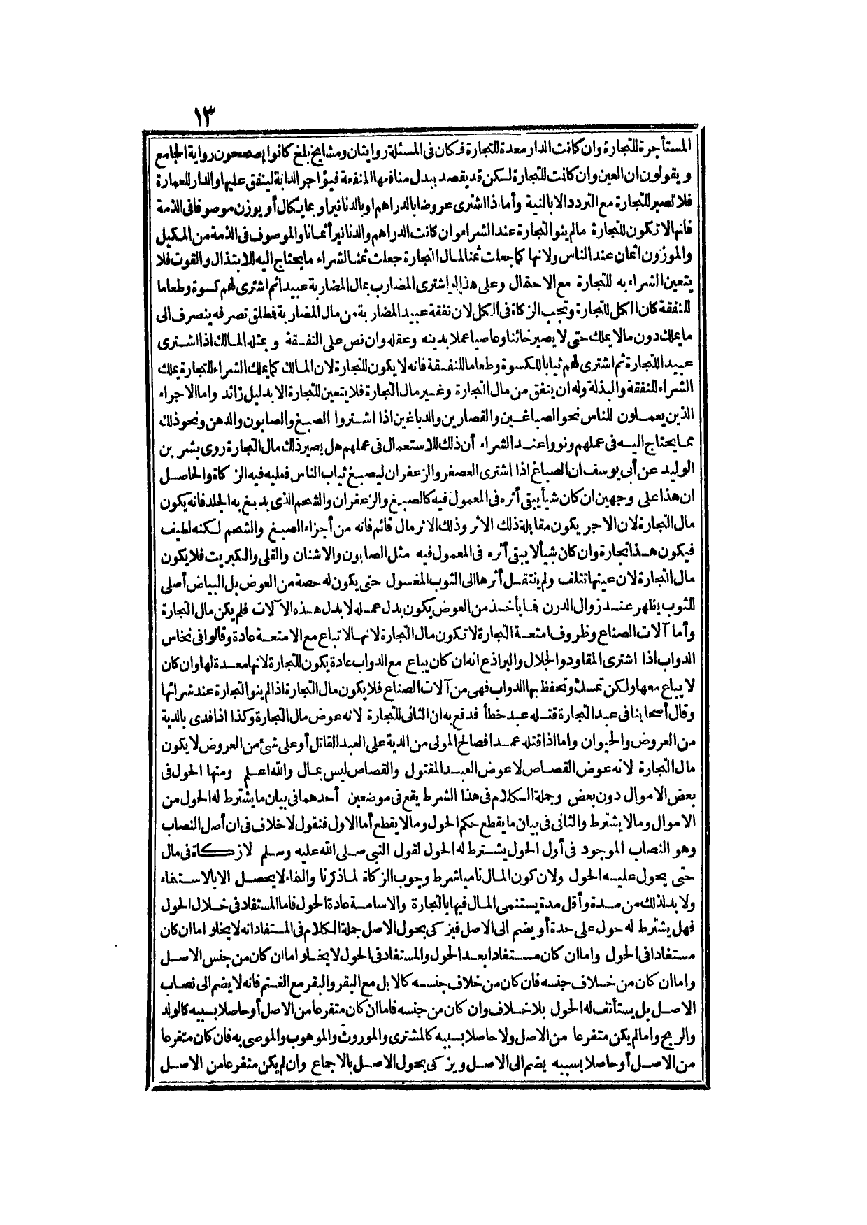 الْمُسْتَأْجَرَةِ لِلتِّجَارَةِ وَإِنْ كَانَتْ الدَّارُ مُعَدَّةً لِلتِّجَارَةِ فَكَانَ فِي الْمَسْأَلَةِ رِوَايَتَانِ وَمَشَايِخُ بَلْخٍ كَانُوا يُصَحِّحُونَ رِوَايَةَ الْجَامِعِ وَيَقُولُونَ: إنَّ الْعَيْنَ وَإِنْ كَانَتْ لِلتِّجَارَةِ لَكِنْ قَدْ يُقْصَدُ بِبَدَلِ مَنَافِعِهَا الْمَنْفَعَةُ فَيُؤَاجِرُ الدَّابَّةَ لِيُنْفِقَ عَلَيْهَا وَالدَّارَ لِلْعِمَارَةِ فَلَا تَصِيرُ لِلتِّجَارَةِ مَعَ التَّرَدُّدِ إلَّا بِالنِّيَّةِ وَأَمَّا إذَا اشْتَرَى عُرُوضًا بِالدَّرَاهِمِ أَوْ بِالدَّنَانِيرِ أَوْ بِمَا يُكَالُ أَوْ يُوزَنُ مَوْصُوفًا فِي الذِّمَّةِ فَإِنَّهَا لَا تَكُونُ لِلتِّجَارَةِ مَا لَمْ يَنْوِ التِّجَارَةَ عِنْدَ الشِّرَاءِ وَإِنْ كَانَتْ الدَّرَاهِمُ وَالدَّنَانِيرُ أَثْمَانًا وَالْمَوْصُوفُ فِي الذِّمَّةِ مِنْ الْمَكِيلِ وَالْمَوْزُونِ أَثْمَانٌ عِنْدَ النَّاسِ؛ وَلِأَنَّهَا كَمَا جُعِلَتْ ثَمَنًا لِمَالِ التِّجَارَةِ جُعِلَتْ ثَمَنًا لِشِرَاءِ مَا يَحْتَاجُ إلَيْهِ لِلِابْتِذَالِ وَالْقُوتِ فَلَا يَتَعَيَّنُ الشِّرَاءُ بِهِ لِلتِّجَارَةِ مَعَ الِاحْتِمَالِ وَعَلَى هَذَا لَوْ اشْتَرَى الْمُضَارِبُ بِمَالِ الْمُضَارَبَةِ عَبِيدًا ثُمَّ اشْتَرَى لَهُمْ كِسْوَةً وَطَعَامًا لِلنَّفَقَةِ كَانَ الْكُلُّ لِلتِّجَارَةِ.