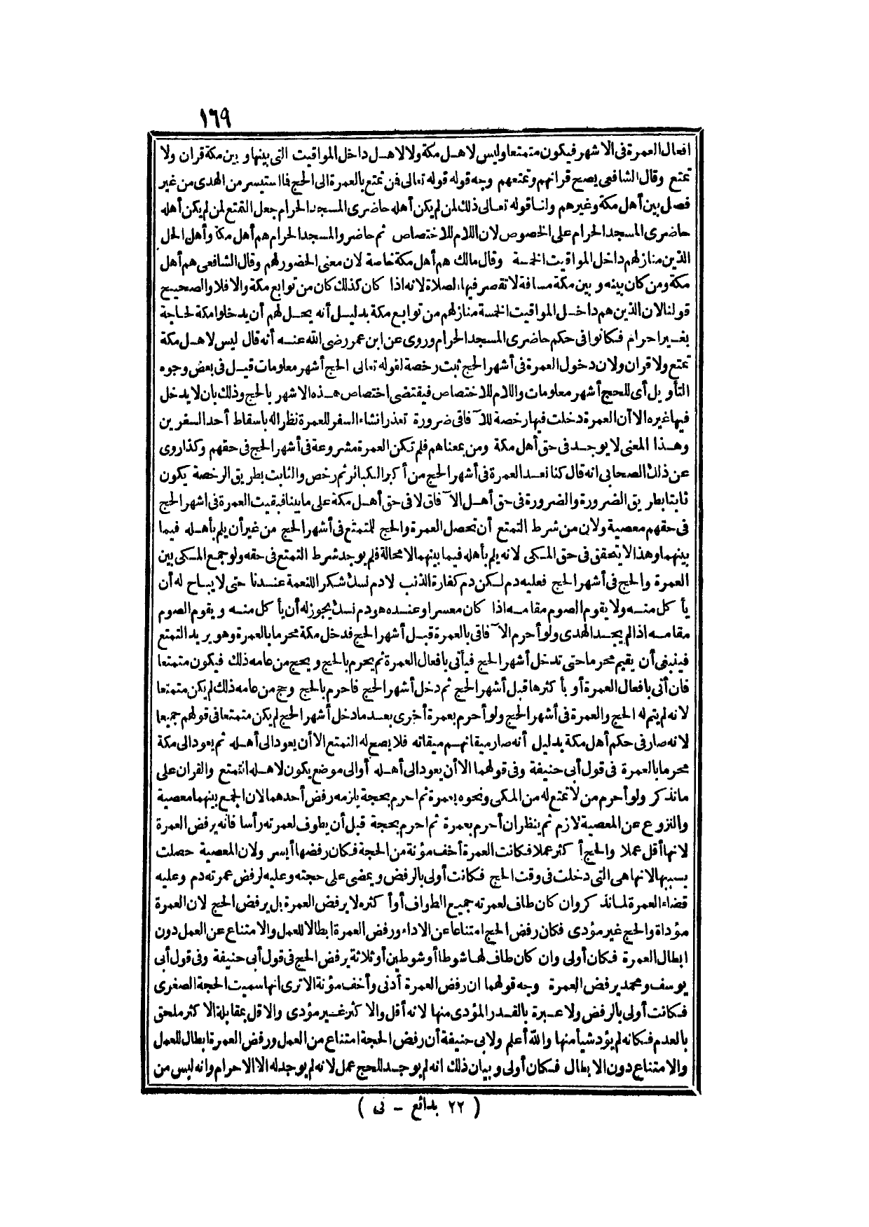 وَجْهُ قَوْلِهِ قَوْله تَعَالَى: {فَمَنْ تَمَتَّعَ بِالْعُمْرَةِ إِلَى الْحَجِّ فَمَا اسْتَيْسَرَ مِنَ الْهَدْيِ} [البقرة: 196] مِنْ غَيْرِ فَصْلٍ بَيْنَ أَهْلِ مَكَّةَ وَغَيْرِهِمْ، وَلَنَا قَوْله تَعَالَى: {ذَلِكَ لِمَنْ لَمْ يَكُنْ أَهْلُهُ حَاضِرِي الْمَسْجِدِ الْحَرَامِ} [البقرة: 196] جَعَلَ التَّمَتُّعَ لِمَنْ لَمْ يَكُنْ أَهْلُهُ حَاضِرِي الْمَسْجِدِ الْحَرَامِ عَلَى الْخُصُوصِ؛ لِأَنَّ اللَّامَ لِلِاخْتِصَاصِ ثُمَّ حَاضِرُو الْمَسْجِدِ الْحَرَامِ هُمْ أَهْلُ مَكَّةَ وَأَهْلُ الْحِلِّ الَّذِينَ مَنَازِلُهُمْ دَاخِلُ الْمَوَاقِيتِ الْخَمْسَةِ.