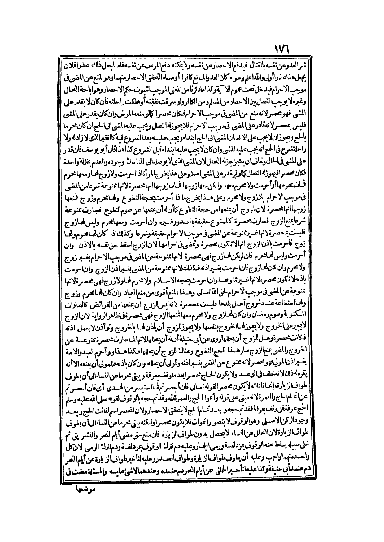 شَرِّ الْعَدُوِّ عَنْ نَفْسِهِ بِالْقِتَالِ فَيَدْفَعُ الْإِحْصَارَ عَنْ نَفْسِهِ، وَلَا يُمْكِنُهُ دَفْعُ الْمَرَضِ عَنْ نَفْسِهِ فَلَمَّا جُعِلَ ذَلِكَ عُذْرًا فَلَأَنْ يُجْعَلَ هَذَا عُذْرًا أَوْلَى، وَاَللَّهُ أَعْلَمُ.