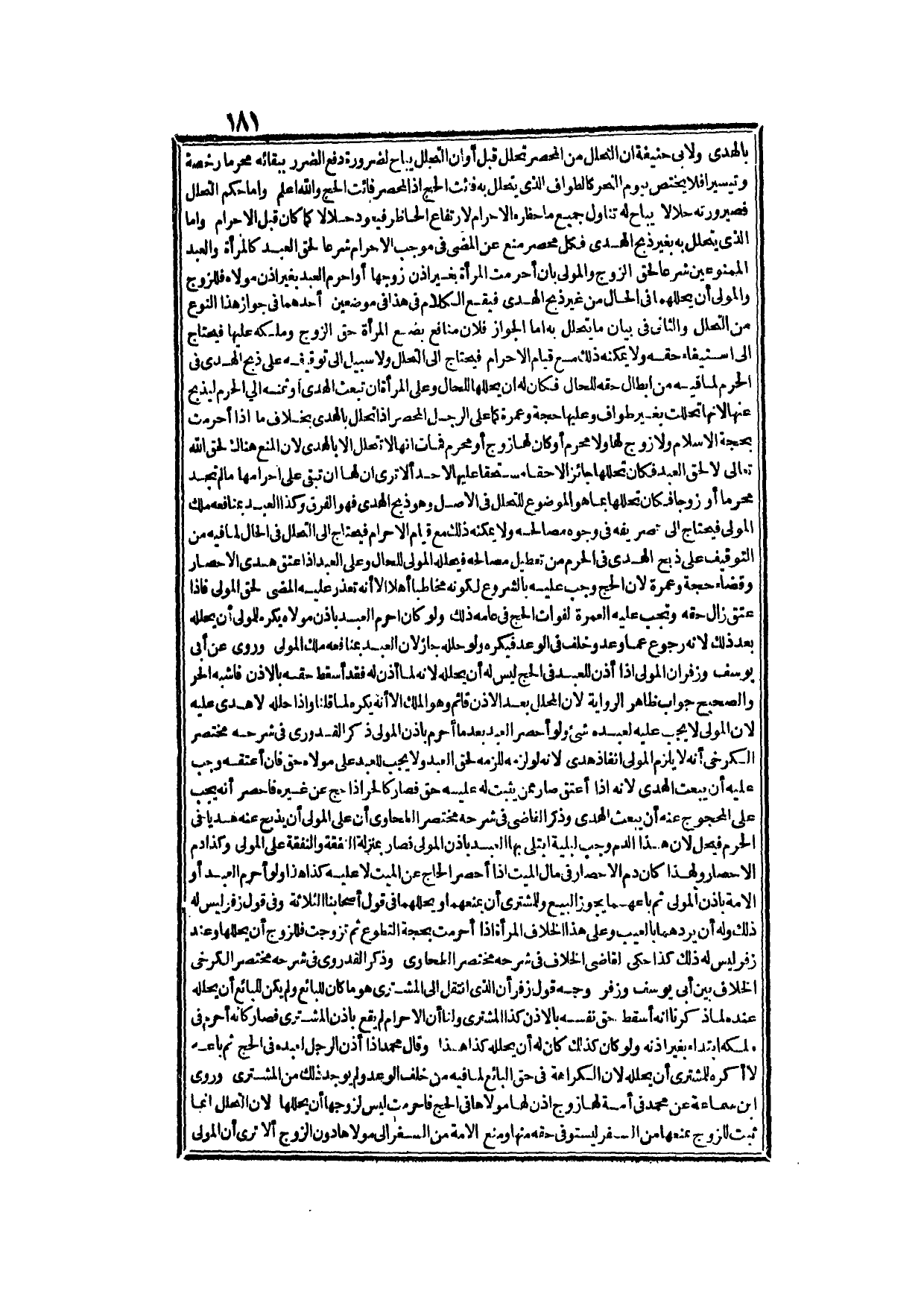 وَذَكَرَ الْقَاضِي فِي شَرْحِهِ مُخْتَصَرَ الطَّحَاوِيِّ: أَنَّ عَلَى الْمَوْلَى أَنْ يَذْبَحَ عَنْهُ هَدْيًا فِي الْحَرَمِ فَيَحِلَّ؛ لِأَنَّ هَذَا الدَّمَ وَجَبَ لِبَلِيَّةٍ اُبْتُلِيَ بِهَا الْعَبْدُ بِإِذْنِ الْمَوْلَى فَصَارَ بِمَنْزِلَةِ النَّفَقَةِ، وَالنَّفَقَةُ عَلَى الْمَوْلَى.