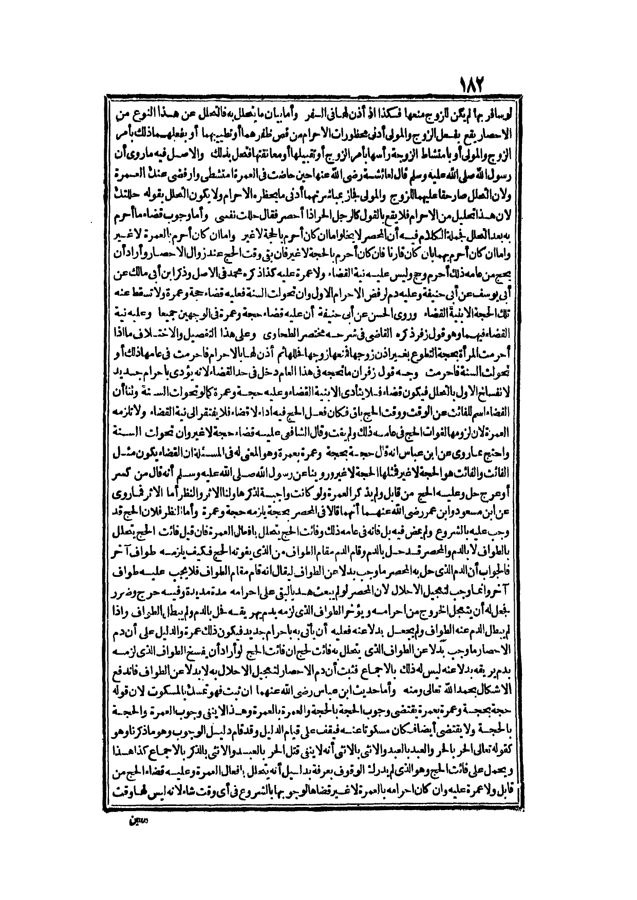 وَأَمَّا حَدِيثُ ابْنِ عَبَّاسٍ - رَضِيَ اللَّهُ عَنْهُمَا - إنْ ثَبَتَ فَهُوَ تَمَسُّكٌ بِالْمَسْكُوتِ؛ لِأَنَّ قَوْلَهُ " حَجَّةٌ بِحَجَّةٍ، وَعُمْرَةٌ بِعُمْرَةٍ " يَقْتَضِي وُجُوبَ الْحَجَّةِ بِالْحَجَّةِ، وَالْعُمْرَةِ بِالْعُمْرَةِ، وَهَذَا لَا يَنْفِي وُجُوبَ الْعُمْرَةِ وَالْحَجَّةِ بِالْحَجَّةِ وَلَا يَقْتَضِي أَيْضًا، فَكَانَ مَسْكُوتًا عَنْهُ فَيَقِفُ عَلَى قِيَامِ الدَّلِيلِ، وَقَدْ قَامَ دَلِيلُ الْوُجُوبِ وَهُوَ مَا ذَكَرْنَا وَهُوَ كَقَوْلِهِ تَعَالَى {الْحُرُّ بِالْحُرِّ وَالْعَبْدُ بِالْعَبْدِ وَالأُنْثَى بِالأُنْثَى} [البقرة: 178] أَنَّهُ لَا يَنْفِي قَتْلَ الْحُرِّ بِالْعَبْدِ وَالْأُنْثَى بِالذَّكَرِ بِالْإِجْمَاعِ كَذَا هَذَا، وَيُحْمَلُ عَلَى فَائِتِ الْحَجِّ وَهُوَ الَّذِي لَمْ يُدْرِكْ الْوُقُوفَ بِدَلِيلِ أَنَّهُ يَتَحَلَّلُ بِأَفْعَالِ الْعُمْرَةِ، وَعَلَيْهِ قَضَاءُ الْحَجِّ مِنْ قَابِلٍ وَلَا عُمْرَةَ عَلَيْهِ.