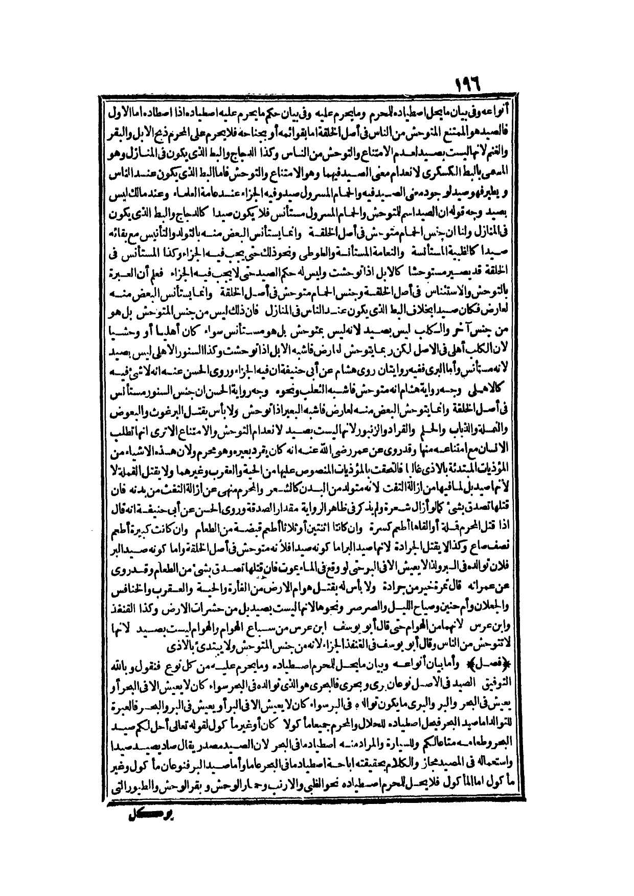 أَنْوَاعِهِ، وَفِي بَيَانِ مَا يَحِلُّ اصْطِيَادُهُ لِلْمُحْرِمِ وَمَا يَحْرُمُ عَلَيْهِ، وَفِي بَيَانِ حُكْمِ مَا يَحْرُمُ عَلَيْهِ اصْطِيَادُهُ إذَا اصْطَادَهُ أَمَّا الْأَوَّلُ فَالصَّيْدُ هُوَ الْمُمْتَنِعُ الْمُتَوَحِّشُ مِنْ النَّاسِ فِي أَصْلِ الْخِلْقَةِ إمَّا بِقَوَائِمِهِ، أَوْ بِجَنَاحِهِ، فَلَا يَحْرُمُ عَلَى الْمُحْرِمِ ذَبْحُ الْإِبِلِ، وَالْبَقَرِ، وَالْغَنَمِ، لِأَنَّهَا لَيْسَتْ بِصَيْدٍ لِعَدَمِ الِامْتِنَاعِ وَالتَّوَحُّشِ مِنْ النَّاسِ.