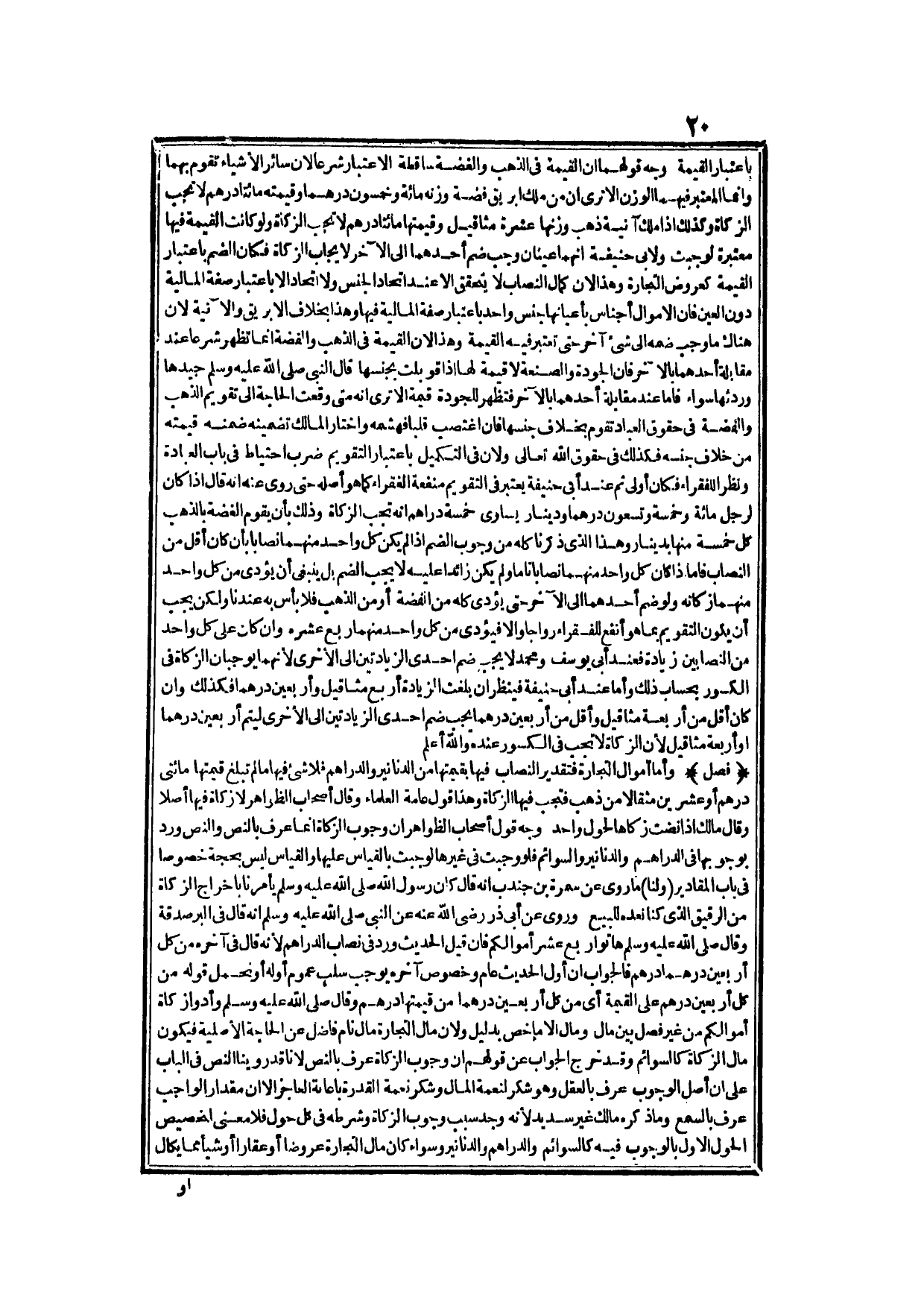 وَأَمَّا أَمْوَالُ التِّجَارَةِ فَتَقْدِيرُ النِّصَابِ فِيهَا بِقِيمَتِهَا مِنْ الدَّنَانِيرِ وَالدَّرَاهِمِ فَلَا شَيْءَ فِيهَا مَا لَمْ تَبْلُغْ قِيمَتُهَا مِائَتَيْ دِرْهَمٍ أَوْ عِشْرِينَ مِثْقَالًا مِنْ ذَهَبٍ فَتَجِبُ فِيهَا الزَّكَاةُ، وَهَذَا قَوْلُ عَامَّةِ الْعُلَمَاءِ، وَقَالَ أَصْحَابُ الظَّوَاهِرِ: وَلَا زَكَاةَ فِيهَا أَصْلًا، وَقَالَ مَالِكٌ: إذَا نَضَّتْ زَكَّاهَا لِحَوْلٍ وَاحِدٍ.