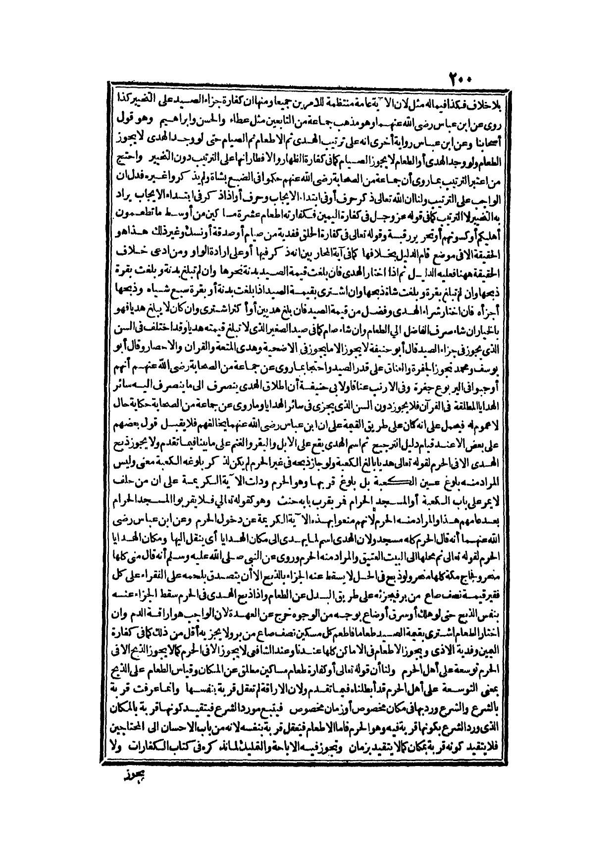 وَمِنْهَا أَنَّ كَفَّارَةَ جَزَاءِ الصَّيْدِ عَلَى التَّخْيِيرِ، كَذَا رُوِيَ عَنْ ابْنِ عَبَّاسٍ - رَضِيَ اللَّهُ عَنْهُ - وَهُوَ مَذْهَبُ جَمَاعَةٍ مِنْ التَّابِعِينَ مِثْلَ: عَطَاءٍ، وَالْحَسَنِ، وَإِبْرَاهِيمَ وَهُوَ قَوْلُ أَصْحَابِنَا، وَعَنْ ابْنِ عَبَّاسٍ رِوَايَةٌ أُخْرَى أَنَّهُ عَلَى تَرْتِيبِ الْهَدْيِ، ثُمَّ الْإِطْعَامِ، ثُمَّ الصِّيَامِ حَتَّى لَوْ وُجِدَ الْهَدْيُ لَا يَجُوزُ الطَّعَامُ.