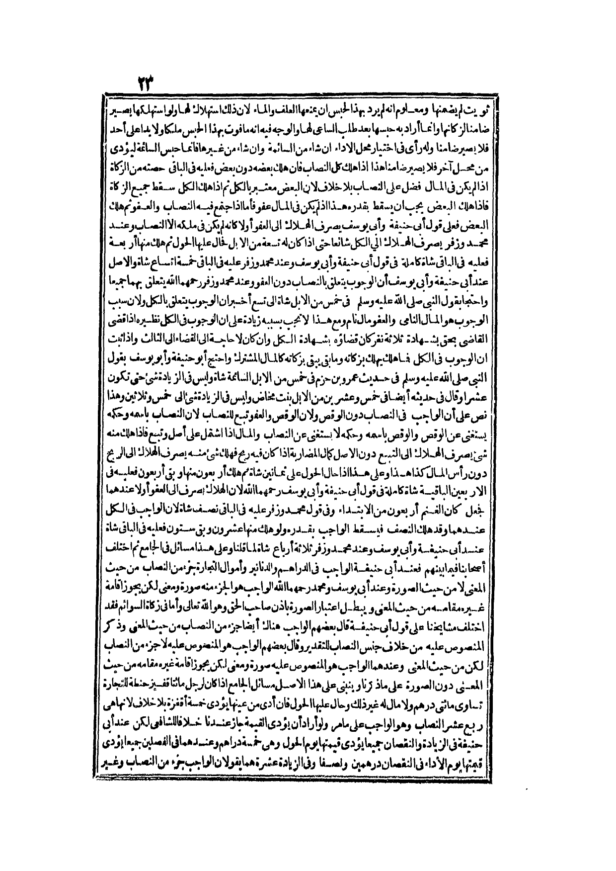 وَالْأَصْلُ عِنْدَ أَبِي حَنِيفَةَ وَأَبِي يُوسُفَ أَنَّ الْوُجُوبَ يَتَعَلَّقُ بِالنِّصَابِ دُونَ الْعَفْوِ، وَعِنْدَ مُحَمَّدٍ وَزُفَرَ رَحِمَهُمَا اللَّهُ يَتَعَلَّقُ بِهِمَا جَمِيعًا وَاحْتَجَّا بِقَوْلِ النَّبِيِّ - صَلَّى اللَّهُ عَلَيْهِ وَسَلَّمَ - «فِي خَمْسٍ مِنْ الْإِبِلِ شَاةٌ إلَى تِسْعٍ» أَخْبَرَ أَنَّ الْوُجُوبَ يَتَعَلَّقُ بِالْكُلِّ، وَلِأَنَّ سَبَبَ الْوُجُوبِ هُوَ الْمَالُ النَّامِي، وَالْعَفْوُ مَالٌ نَامٍ.