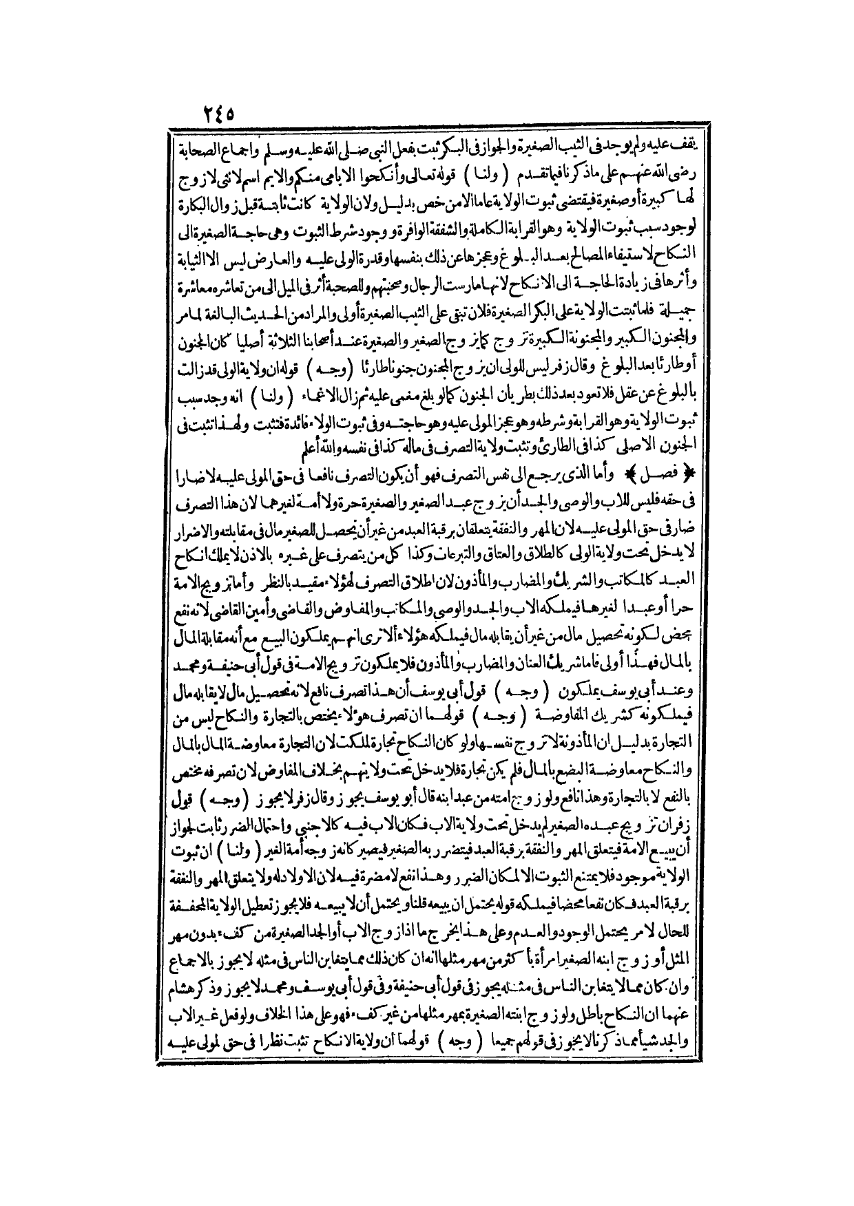 يَقِفُ عَلَيْهِ وَلَمْ يُوجَدْ فِي الثَّيِّبِ الصَّغِيرَةِ وَالْجَوَازُ فِي الْبِكْرِ ثَبَتَ بِفِعْلِ النَّبِيِّ - صَلَّى اللَّهُ عَلَيْهِ وَسَلَّمَ - وَإِجْمَاعِ الصَّحَابَةِ - رَضِيَ اللَّهُ عَنْهُمْ - عَلَى مَا ذَكَرْنَا فِيمَا تَقَدَّمَ.