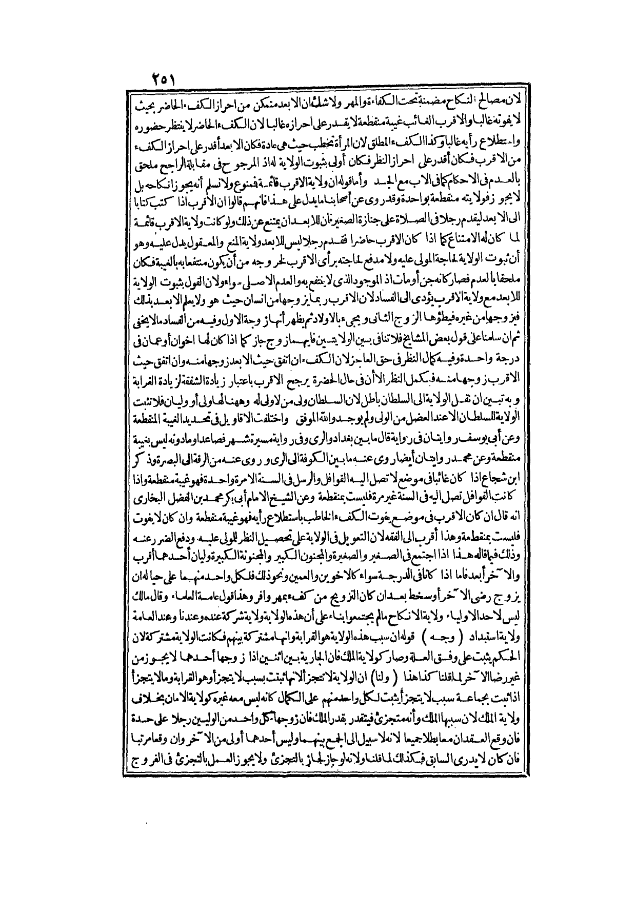وَأَمَّا قَوْلُهُ: " إنَّ وَلَايَةَ الْأَقْرَبِ قَائِمَةٌ " فَمَمْنُوعٌ وَلَا نُسَلِّمُ أَنَّهُ يَجُوزُ إنْكَاحُهُ، بَلْ لَا يَجُوزُ فَوَلَايَتُهُ مُنْقَطِعَةٌ بِوَاحِدَةٍ، وَقَدْ رُوِيَ عَنْ أَصْحَابِنَا مَا يَدُلُّ عَلَى هَذَا فَإِنَّهُمْ قَالُوا: إنَّ الْأَقْرَبَ إذَا كَتَبَ كِتَابًا إلَى الْأَبْعَدِ لِيُقَدِّمَ رَجُلًا فِي الصَّلَاةِ عَلَى جِنَازَةِ الصَّغِيرِ فَإِنَّ لِلْأَبْعَدِ أَنْ يَمْتَنِعَ عَنْ ذَلِكَ.