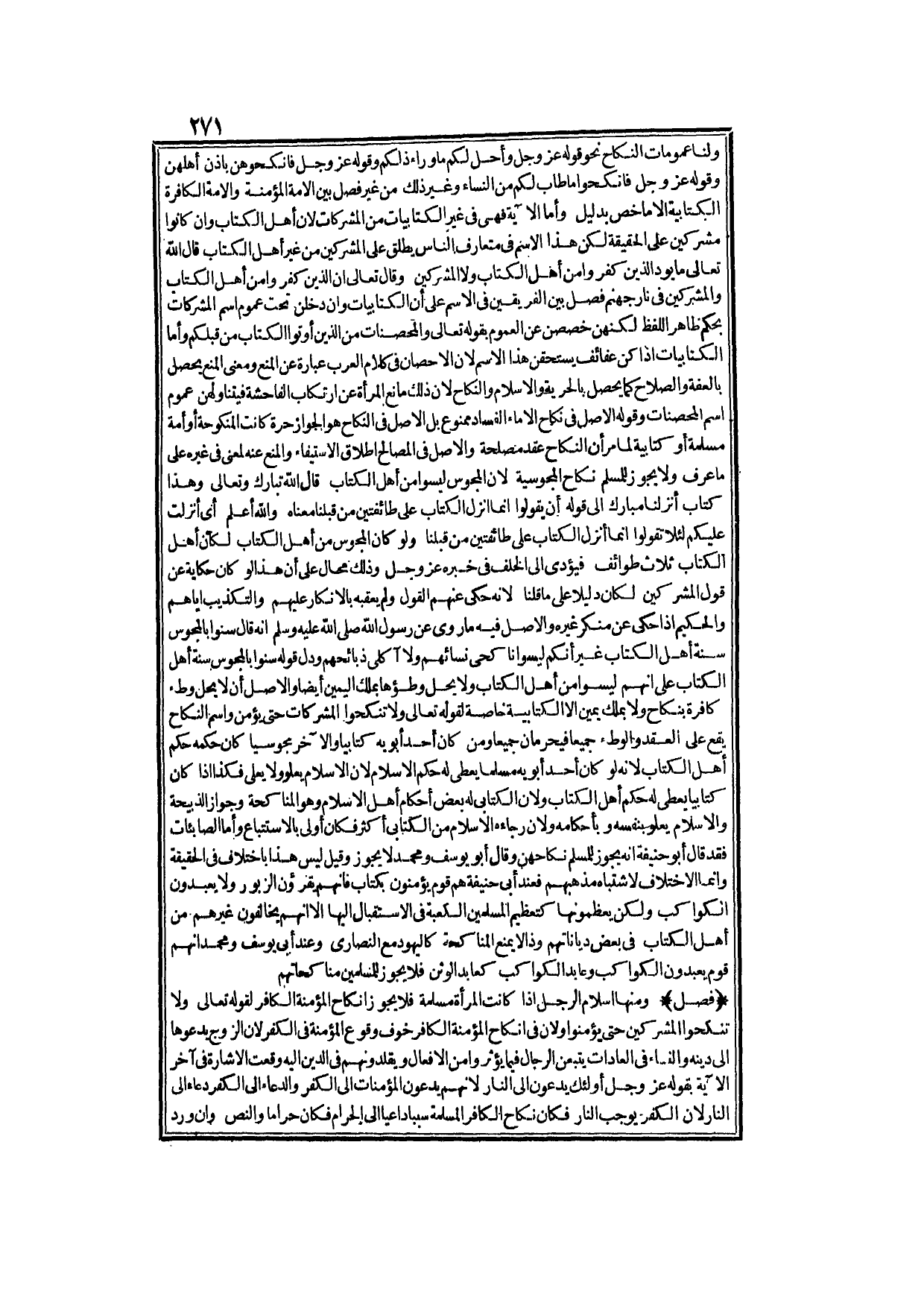 وَأَمَّا الْآيَةُ فَهِيَ فِي غَيْرِ الْكِتَابِيَّاتِ مِنْ الْمُشْرِكَاتِ؛ لِأَنَّ أَهْلَ الْكِتَابِ، وَإِنْ كَانُوا مُشْرِكِينَ عَلَى الْحَقِيقَةِ لَكِنْ هَذَا الِاسْمُ فِي مُتَعَارَفِ النَّاسِ يُطْلَقُ عَلَى الْمُشْرِكِينَ مِنْ غَيْرِ أَهْلِ الْكِتَابِ قَالَ اللَّهُ تَعَالَى: {مَا يَوَدُّ الَّذِينَ كَفَرُوا مِنْ أَهْلِ الْكِتَابِ وَلا الْمُشْرِكِينَ} [البقرة: 105] .