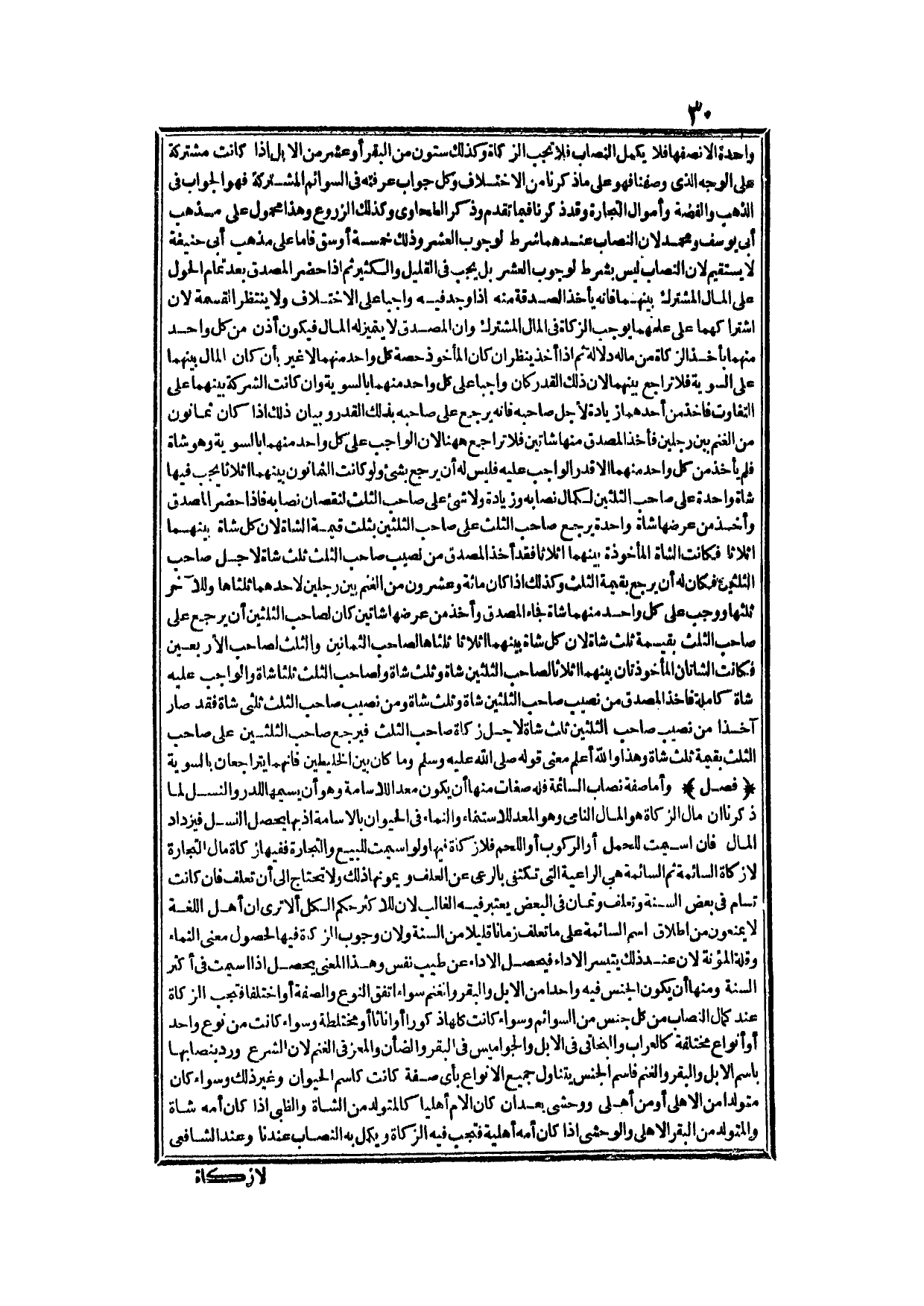 وَكَذَلِكَ سِتُّونَ مِنْ الْبَقَرِ أَوْ عَشْرٌ مِنْ الْإِبِلِ إذَا كَانَتْ مُشْتَرَكَةً عَلَى الْوَجْهِ الَّذِي وَصَفْنَا فَهُوَ عَلَى مَا ذَكَرْنَا مِنْ الِاخْتِلَافِ، وَكُلُّ جَوَابٍ عَرَفْتَهُ فِي السَّوَائِمِ الْمُشْتَرَكَةِ فَهُوَ الْجَوَابُ فِي الذَّهَبِ وَالْفِضَّةِ وَأَمْوَالِ التِّجَارَةِ وَقَدْ ذَكَرْنَا فِيمَا تَقَدَّمَ وَذَكَرَ الطَّحَاوِيُّ، وَكَذَلِكَ الزُّرُوعُ وَهَذَا مَحْمُولٌ عَلَى مَذْهَبِ أَبِي يُوسُفَ وَمُحَمَّدٍ؛ لِأَنَّ النِّصَابَ عِنْدَهُمَا شَرْطٌ لِوُجُوبِ الْعُشْرِ وَذَلِكَ خَمْسَةُ أَوْسُقٍ فَأَمَّا عَلَى مَذْهَبِ أَبِي حَنِيفَةَ لَا يَسْتَقِيمُ؛ لِأَنَّ النِّصَابَ لَيْسَ بِشَرْطٍ لِوُجُوبِ الْعُشْرِ بَلْ يَجِبُ فِي الْقَلِيلِ وَالْكَثِيرِ، ثُمَّ إذَا حَضَرَ الْمُصْدِقُ بَعْدَ تَمَامِ الْحَوْلِ عَلَى الْمَالِ الْمُشْتَرَكِ بَيْنَهُمَا فَإِنَّهُ يَأْخُذُ الصَّدَقَةَ مِنْهُ إذَا وَجَدَ فِيهِ وَاجِبًا عَلَى الِاخْتِلَافِ وَلَا يَنْتَظِرُ الْقِسْمَةَ؛ لِأَنَّ اشْتِرَاكَهُمَا عَلَى عِلْمِهِمَا يُوجِبُ الزَّكَاةَ فِي الْمَالِ الْمُشْتَرَكِ.