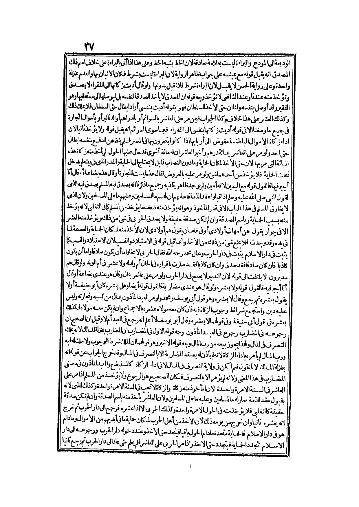وَلَوْ مَرَّ الْعَبْدُ الْمَأْذُونُ بِمَالٍ مِنْ كَسْبِهِ وَتِجَارَتِهِ وَلَيْسَ عَلَيْهِ دَيْنٌ وَاسْتَجْمَعَ شَرَائِطَ وُجُوبِ الزَّكَاةِ فِيهِ فَإِنْ كَانَ مَعَهُ مَوْلَاهُ عَشَرَهُ بِالْإِجْمَاعِ، وَإِنْ لَمْ يَكُنْ مَعَهُ مَوْلَاهُ فَكَذَلِكَ يَعْشُرُهُ فِي قَوْلِ أَبِي حَنِيفَةَ وَفِي قَوْلِهِمَا لَا يَعْشُرُهُ، وَقَالَ أَبُو يُوسُفَ: لَا أَعْلَمُ أَنَّهُ رَجَعَ فِي الْعَبْدِ أَمْ لَا، وَقِيلَ: إنَّ الصَّحِيحَ أَنَّ رُجُوعَهُ فِي الْمُضَارِبِ رُجُوعٌ فِي الْعَبْدِ الْمَأْذُونِ.