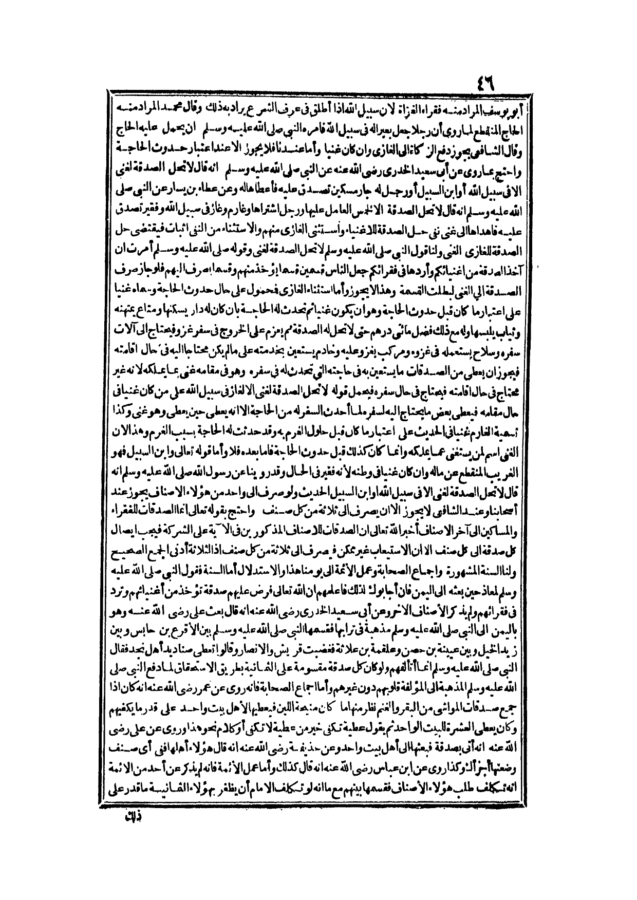 وَأَمَّا عِنْدَنَا فَلَا يَجُوزُ إلَّا عِنْدَ اعْتِبَارِ حُدُوثِ الْحَاجَةِ، وَاحْتُجَّ بِمَا رُوِيَ عَنْ أَبِي سَعِيدٍ الْخُدْرِيِّ - رَضِيَ اللَّهُ عَنْهُ - عَنْ النَّبِيِّ - صَلَّى اللَّهُ عَلَيْهِ وَسَلَّمَ - أَنَّهُ قَالَ: «لَا تَحِلُّ الصَّدَقَةُ لِغَنِيٍّ إلَّا فِي سَبِيلِ اللَّهِ أَوْ ابْنِ السَّبِيلِ أَوْ رَجُلٍ لَهُ جَارٌ مِسْكِينٌ تَصَدَّقَ عَلَيْهِ فَأَعْطَاهَا لَهُ» ، وَعَنْ عَطَاءِ بْنِ يَسَارٍ عَنْ النَّبِيِّ - صَلَّى اللَّهُ عَلَيْهِ وَسَلَّمَ - أَنَّهُ قَالَ: «لَا تَحِلُّ الصَّدَقَةُ إلَّا لِخَمْسٍ الْعَامِلِ عَلَيْهَا، وَرَجُلٍ اشْتَرَاهَا، وَغَارِمٍ، وَغَازٍ فِي سَبِيلِ اللَّهِ، وَفَقِيرٍ تُصُدِّقَ عَلَيْهِ فَأَهْدَاهَا إلَى غَنِيٍّ» نَفَى حِلَّ الصَّدَقَةِ لِلْأَغْنِيَاءِ وَاسْتَثْنَى الْغَازِيَ مِنْهُمْ وَالِاسْتِثْنَاءُ مِنْ النَّفْيِ إثْبَاتٌ فَيَقْتَضِي حِلَّ الصَّدَقَةِ لِلْغَازِي الْغَنِيِّ وَلَنَا قَوْلُ النَّبِيِّ: - صَلَّى اللَّهُ عَلَيْهِ وَسَلَّمَ - «لَا تَحِلُّ الصَّدَقَةُ لِغَنِيٍّ» وَقَوْلُهُ - صَلَّى اللَّهُ عَلَيْهِ وَسَلَّمَ -: «أُمِرْتُ أَنْ آخُذَ الصَّدَقَةَ مِنْ أَغْنِيَائِكُمْ وَأَرُدَّهَا فِي فُقَرَائِكُمْ» جَعَلَ النَّاسَ قِسْمَيْنِ قِسْمًا يُؤْخَذُ مِنْهُمْ وَقِسْمًا يُصْرَفُ إلَيْهِمْ فَلَوْ جَازَ صَرْفُ الصَّدَقَةِ إلَى الْغَنِيِّ لَبَطَلَتْ الْقِسْمَةُ وَهَذَا لَا يَجُوزُ.