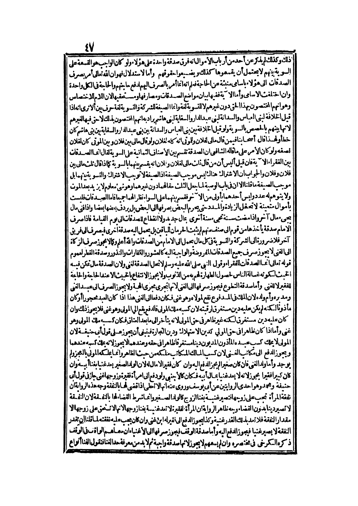 وَلَوْ قِيلَ الْخِلَافَةُ بَيْنَ بَنِي الْعَبَّاسِ وَالسِّدَانَةُ بَيْنَ بَنِي عَبْدِ الدَّارِ وَالسِّقَايَةُ بَيْنَ بَنِي هَاشِمٍ كَانَ خَطَأً؛ وَلِهَذَا قَالَ أَصْحَابُنَا فِيمَنْ قَالَ: مَالِي لِفُلَانٍ وَلِلْمَوْتَى أَنَّهُ كُلُّهُ لِفُلَانٍ، وَلَوْ قَالَ: مَالِي بَيْنَ فُلَانٍ وَبَيْنَ الْمَوْتَى كَانَ لِفُلَانٍ نِصْفُهُ، وَلَوْ كَانَ الْأَمْرُ عَلَى مَا قَالَهُ الشَّافِعِيُّ أَنَّ الصَّدَقَةَ تُقْسَمُ بَيْنَ الْأَصْنَافِ الثَّمَانِيَةِ عَلَى السَّوِيَّةِ لَقَالَ: إنَّمَا الصَّدَقَاتُ بَيْنَ الْفُقَرَاءِ الْآيَةَ، فَإِنْ قِيلَ أَلَيْسَ أَنَّ مَنْ قَالَ: ثُلُثُ مَالِي لِفُلَانٍ وَفُلَانٍ أَنَّهُ يُقْسَمُ بَيْنَهُمَا بِالسَّوِيَّةِ كَمَا إذَا قَالَ: ثُلُثُ مَالِي بَيْنَ فُلَانٍ وَفُلَانٍ، وَالْجَوَابُ أَنَّ الِاشْتِرَاكَ هُنَاكَ لَيْسَ مُوجَبُ الصِّيغَةِ إذْ الصِّيغَةُ لَا تُوجِبُ الِاشْتِرَاكَ وَالتَّسْوِيَةَ بَيْنَهُمَا بَلْ مُوجَبُ الصِّيغَةِ مَا قِلْنَا، إلَّا أَنَّ فِي بَابِ الْوَصِيَّةِ لَمَّا جُعِلَ الثُّلُثُ حَقًّا لَهُمَا دُونَ غَيْرِهِمَا وَهُوَ شَيْءٌ مَعْلُومٌ لَا يَزِيدُ بَعْدَ الْمَوْتِ وَلَا يُتَوَهَّمُ لَهُ عَدَدٌ وَلَيْسَ أَحَدُهُمَا بِأَوْلَى مِنْ الْآخَرِ فَقَسَمَ بَيْنَهُمَا عَلَى السَّوَاءِ نَظَرًا لَهُمَا جَمِيعًا فَأَمَّا الصَّدَقَاتُ فَلَيْسَتْ بِأَمْوَالٍ مُتَعَيِّنَةٍ لَا تَحْتَمِلُ الزِّيَادَةَ وَالْمَدَدَ حَتَّى يُحَرَّمَ الْبَعْضُ بِصَرْفِهَا إلَى الْبَعْضِ بَلْ يُرْدِفُ بَعْضُهَا بَعْضًا، وَإِذَا فَنِيَ مَالٌ يَجِيءُ مَالٌ آخَرُ وَإِذَا مَضَتْ سَنَةٌ تَجِيءُ سَنَةٌ أُخْرَى بِمَالٍ جَدِيدٍ وَلَا انْقِطَاعَ لِلصَّدَقَاتِ إلَى يَوْمِ الْقِيَامَةِ، فَإِذَا صَرَفَ الْإِمَامُ صَدَقَةً يَأْخُذُهَا مِنْ قَوْمٍ إلَى صِنْفٍ مِنْهُمْ لَمْ يَثْبُتْ الْحِرْمَانُ لِلْبَاقِينَ بَلْ يُحْمَلُ إلَيْهِ صَدَقَةٌ أُخْرَى فَيَصْرِفُ إلَى فَرِيقٍ آخَرَ فَلَا ضَرُورَةَ إلَى الشَّرِكَةِ وَالتَّسْوِيَةِ فِي كُلِّ مَالٍ يُحْمَلُ إلَى الْإِمَامِ مِنْ الصَّدَقَاتِ وَاَللَّهُ أَعْلَمُ.