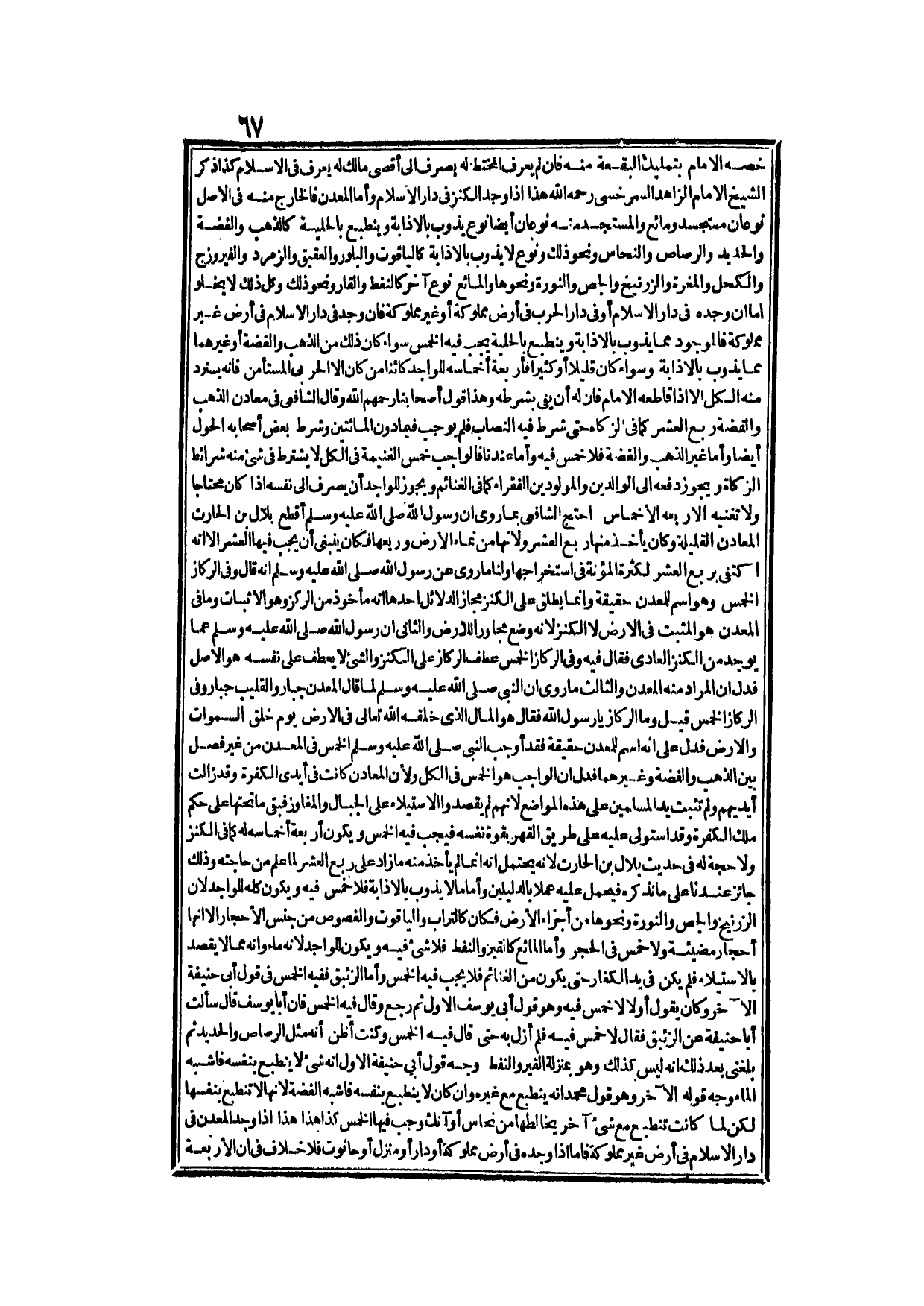 وَأَمَّا عِنْدَنَا فَالْوَاجِبُ خُمُسُ الْغَنِيمَةِ فِي الْكُلِّ لَا يُشْتَرَطُ فِي شَيْءٍ مِنْهُ شَرَائِطُ الزَّكَاةِ وَيَجُوزُ دَفْعُهُ إلَى الْوَالِدَيْنِ، وَالْمَوْلُودِينَ الْفُقَرَاءِ كَمَا فِي الْغَنَائِمِ.