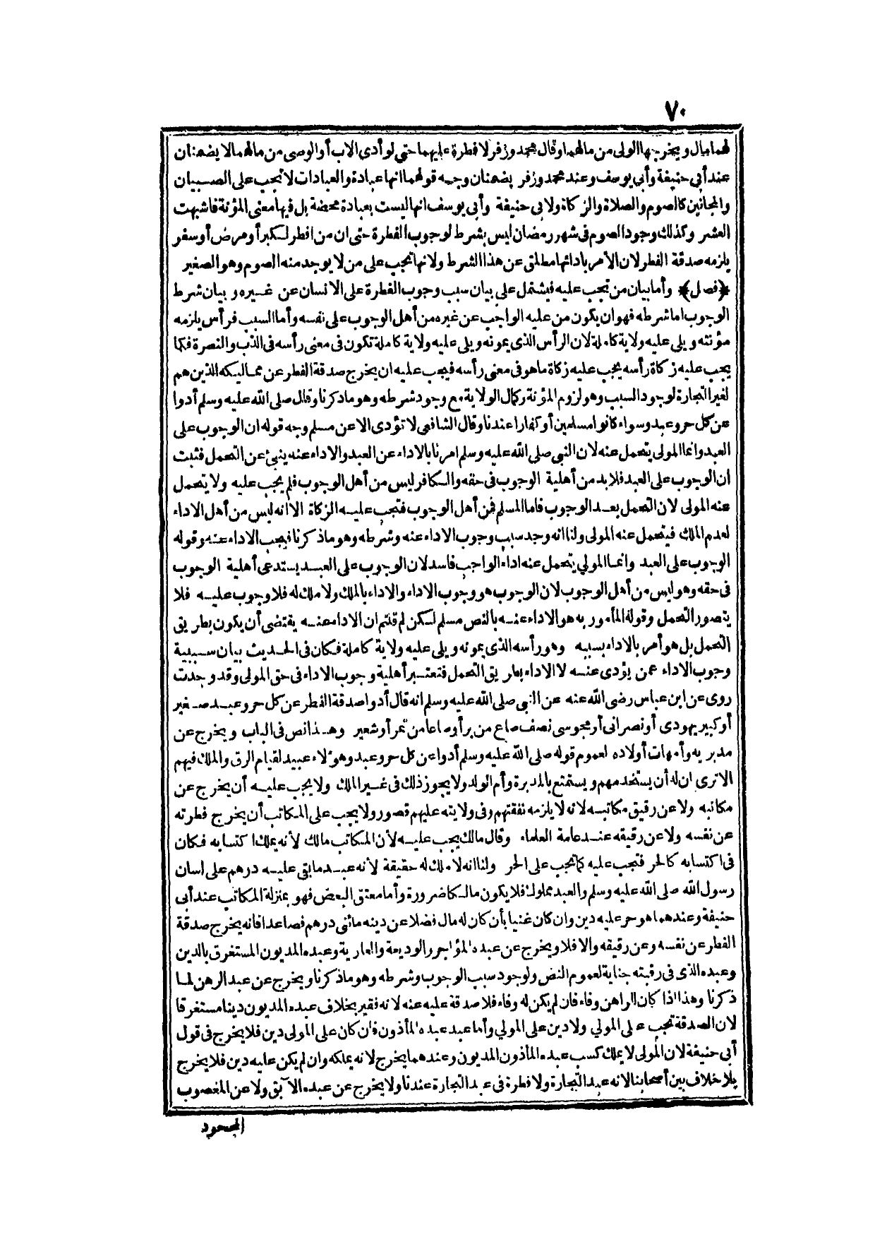 وَجْهُ قَوْلِهِ إنَّ الْوُجُوبَ عَلَى الْعَبْدِ وَإِنَّمَا الْمَوْلَى يَتَحَمَّلُ عَنْهُ؛ لِأَنَّ النَّبِيَّ - صَلَّى اللَّهُ عَلَيْهِ وَسَلَّمَ - أَمَرَنَا بِالْأَدَاءِ عَنْ الْعَبْدِ، وَالْأَدَاءُ عَنْهُ يُنْبِئُ عَنْ التَّحَمُّلِ فَثَبَتَ أَنَّ الْوُجُوبَ عَلَى الْعَبْدِ فَلَا بُدَّ مِنْ أَهْلِيَّةِ الْوُجُوبِ فِي حَقِّهِ، وَالْكَافِرُ لَيْسَ مِنْ أَهْلِ الْوُجُوبِ فَلَمْ يَجِبْ عَلَيْهِ وَلَا يَتَحَمَّلُ عَنْهُ الْمَوْلَى؛ لِأَنَّ التَّحَمُّلَ بَعْدَ الْوُجُوبِ، فَأَمَّا الْمُسْلِمُ فَمِنْ أَهْلِ الْوُجُوبِ فَتَجِبُ عَلَيْهِ الزَّكَاةُ إلَّا أَنَّهُ لَيْسَ مِنْ أَهْلِ الْأَدَاءِ لِعَدَمِ الْمِلْكِ فَيَتَحَمَّلُ عَنْهُ الْمَوْلَى، وَلَنَا أَنَّهُ وُجِدَ سَبَبُ وُجُوبِ الْأَدَاءِ عَنْهُ وَشَرْطُهُ وَهُوَ مَا ذَكَرْنَا فَيَجِبُ الْأَدَاءُ عَنْهُ، وَقَوْلُهُ: " الْوُجُوبُ عَلَى الْعَبْدِ وَإِنَّمَا الْمَوْلَى يَتَحَمَّلُ عَنْهُ أَدَاءَ الْوَاجِبِ فَاسِدٌ؛ لِأَنَّ الْوُجُوبَ عَلَى الْعَبْدِ يَسْتَدْعِي أَهْلِيَّةَ الْوُجُوبِ فِي حَقِّهِ وَهُوَ لَيْسَ مِنْ أَهْلِ الْوُجُوبِ؛ لِأَنَّ الْوُجُوبَ هُوَ وُجُوبُ الْأَدَاءِ، وَالْأَدَاءُ بِالْمِلْكِ وَلَا مِلْكَ لَهُ فَلَا وُجُوبَ عَلَيْهِ فَلَا يُتَصَوَّرُ التَّحَمُّلُ، وَقَوْلُهُ الْمَأْمُورُ بِهِ هُوَ الْأَدَاءُ عَنْهُ بِالنَّصِّ مُسَلَّمٌ لَكِنْ لِمَ قُلْتُمْ إنَّ الْأَدَاءَ عَنْهُ يَقْتَضِي أَنْ يَكُونَ بِطَرِيقِ التَّحَمُّلِ بَلْ هُوَ أَمْرٌ بِالْأَدَاءِ بِسَبَبِهِ وَهُوَ رَأْسُهُ الَّذِي يُمَوِّنُهُ وَيَلِي عَلَيْهِ وِلَايَةً كَامِلَةً فَكَانَ فِي الْحَدِيثِ بَيَانُ سَبَبِيَّةِ وُجُوبِ الْأَدَاءِ عَمَّنْ يُؤَدِّي عَنْهُ لَا الْأَدَاءُ بِطَرِيقِ التَّحَمُّلِ فَتُعْتَبَرُ أَهْلِيَّةُ وُجُوبِ الْأَدَاءِ فِي حَقِّ الْمَوْلَى وَقَدْ وُجِدَتْ رُوِيَ عَنْ ابْنِ عَبَّاسٍ - رَضِيَ اللَّهُ عَنْهُ - عَنْ النَّبِيِّ - صَلَّى اللَّهُ عَلَيْهِ وَسَلَّمَ - أَنَّهُ قَالَ: «أَدُّوا صَدَقَةَ الْفِطْرِ عَنْ كُلِّ حُرٍّ وَعَبْدٍ صَغِيرٍ، أَوْ كَبِيرٍ يَهُودِيٍّ، أَوْ نَصْرَانِيٍّ، أَوْ مَجُوسِيٍّ نِصْفَ صَاعٍ مِنْ بُرٍّ، أَوْ صَاعًا مِنْ تَمْرٍ، أَوْ شَعِيرٍ» وَهَذَا نَصٌّ فِي الْبَابِ، وَيُخْرِجُ عَنْ مُدَبَّرِيهِ وَأُمَّهَاتِ، أَوْلَادِهِ لِعُمُومِ قَوْلِهِ - صَلَّى اللَّهُ عَلَيْهِ وَسَلَّمَ - «أَدُّوا عَنْ كُلِّ حُرٍّ وَعَبْدٍ» وَهَؤُلَاءِ عَبِيدٌ لِقِيَامِ الرِّقِّ، وَالْمِلْكِ فِيهِمْ.