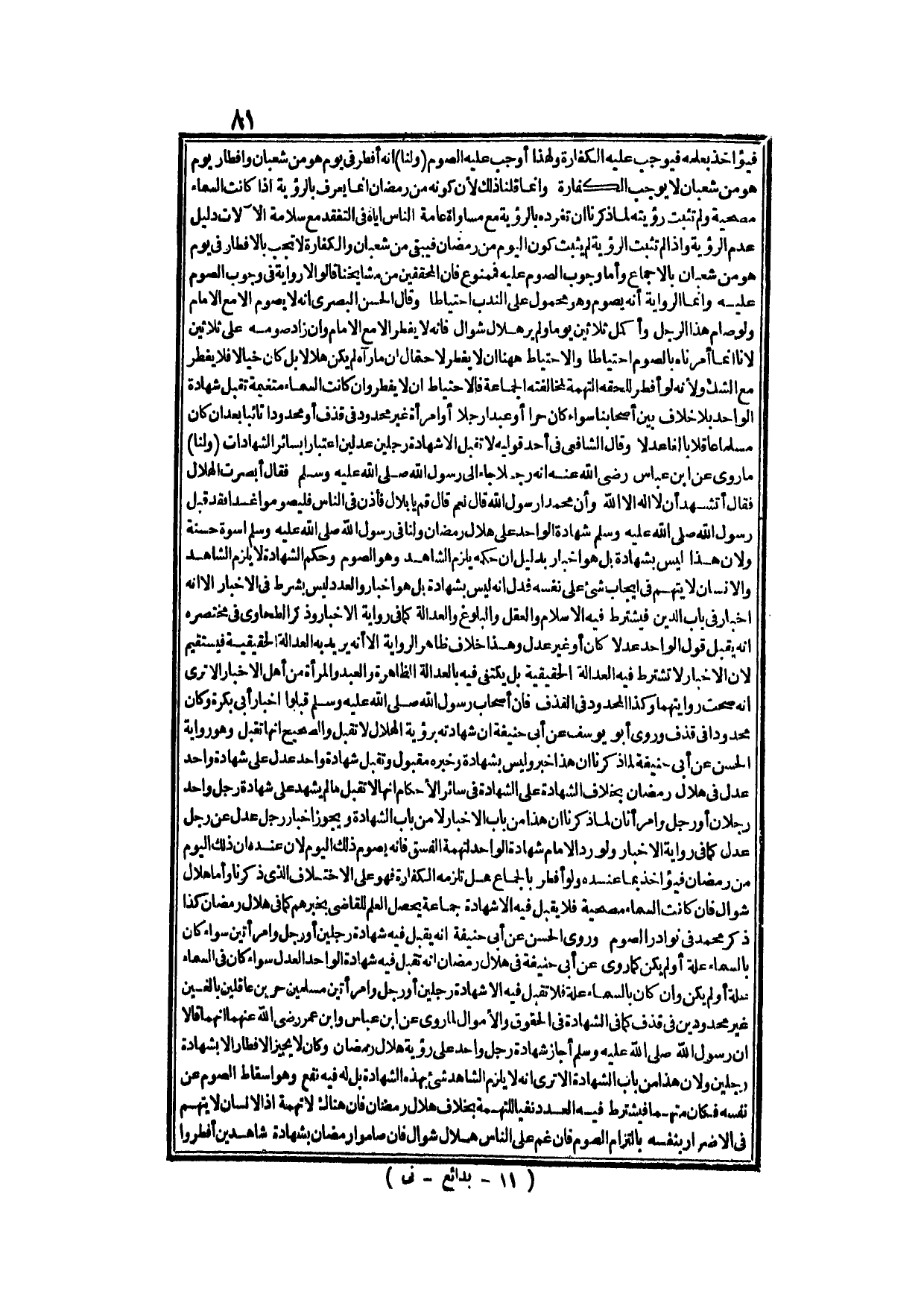 (وَلَنَا) أَنَّهُ أَفْطَرَ فِي يَوْمٍ هُوَ مِنْ شَعْبَانَ، وَإِفْطَارُ يَوْمٍ هُوَ مِنْ شَعْبَانَ لَا يُوجِبُ الْكَفَّارَةَ، وَإِنَّمَا قُلْنَا ذَلِكَ لِأَنَّ كَوْنَهُ مِنْ رَمَضَانَ إنَّمَا يُعْرَفُ بِالرُّؤْيَةِ إذَا كَانَتْ السَّمَاءُ مُصْحِيَةً وَلَمْ تَثْبُتْ رُؤْيَتُهُ لِمَا ذَكَرْنَا: أَنَّ تَفَرُّدَهُ بِالرُّؤْيَةِ مَعَ مُسَاوَاةِ عَامَّةِ النَّاسِ إيَّاهُ فِي التَّفَقُّدِ مَعَ سَلَامَةِ الْآلَاتِ دَلِيلُ عَدَمِ الرُّؤْيَةِ، وَإِذَا لَمْ تَثْبُتْ الرُّؤْيَةُ لَمْ يَثْبُتْ كَوْنُ الْيَوْمِ مِنْ رَمَضَانَ، فَيَبْقَى مِنْ شَعْبَانَ، وَالْكَفَّارَةُ لَا تَجِبُ بِالْإِفْطَارِ فِي يَوْمٍ هُوَ مِنْ شَعْبَانَ بِالْإِجْمَاعِ، وَأَمَّا وُجُوبُ الصَّوْمِ عَلَيْهِ فَمَمْنُوعٌ، فَإِنَّ الْمُحَقِّقِينَ مِنْ مَشَايِخِنَا قَالُوا: لَا رِوَايَةَ فِي وُجُوبِ الصَّوْمِ عَلَيْهِ وَإِنَّمَا الرِّوَايَةُ أَنَّهُ يَصُومُ وَهُوَ مَحْمُولٌ عَلَى النَّدْبِ احْتِيَاطًا، وَقَالَ الْحَسَنُ الْبَصْرِيُّ: إنَّهُ لَا يَصُومُ إلَّا مَعَ الْإِمَامِ، وَلَوْ صَامَ هَذَا الرَّجُلُ وَأَكْمَلَ ثَلَاثِينَ يَوْمًا وَلَمْ يُرَ هِلَالُ شَوَّالٍ فَإِنَّهُ لَا يُفْطِرُ إلَّا مَعَ الْإِمَامِ، وَإِنْ زَادَ صَوْمُهُ عَلَى ثَلَاثِينَ لِأَنَّا إنَّمَا أَمَرْنَاهُ بِالصَّوْمِ احْتِيَاطًا،، وَالِاحْتِيَاطُ هَهُنَا أَنْ لَا يُفْطِرَ لِاحْتِمَالِ أَنَّ مَا رَآهُ لَمْ يَكُنْ هِلَالًا بَلْ كَانَ خَيَالًا فَلَا يُفْطِرُ مَعَ الشَّكِّ، وَلِأَنَّهُ لَوْ أَفْطَرَ لَلَحِقَهُ التُّهْمَةُ لِمُخَالِفَتِهِ الْجَمَاعَةَ، فَالِاحْتِيَاطُ أَنْ لَا يُفْطِرَ وَإِنْ كَانَتْ السَّمَاءُ مُتَغَيِّمَةً تُقْبَلُ شَهَادَةُ الْوَاحِدِ بِلَا خِلَافٍ بَيْنَ أَصْحَابِنَا، سَوَاءٌ كَانَ حُرًّا، أَوْ عَبْدًا، رَجُلًا، أَوْ امْرَأَةً، غَيْرَ مَحْدُودٍ فِي قَذْفٍ، أَوْ مَحْدُودًا تَائِبًا، بَعْدَ أَنْ كَانَ مُسْلِمًا عَاقِلًا بَالِغًا عَدْلًا.