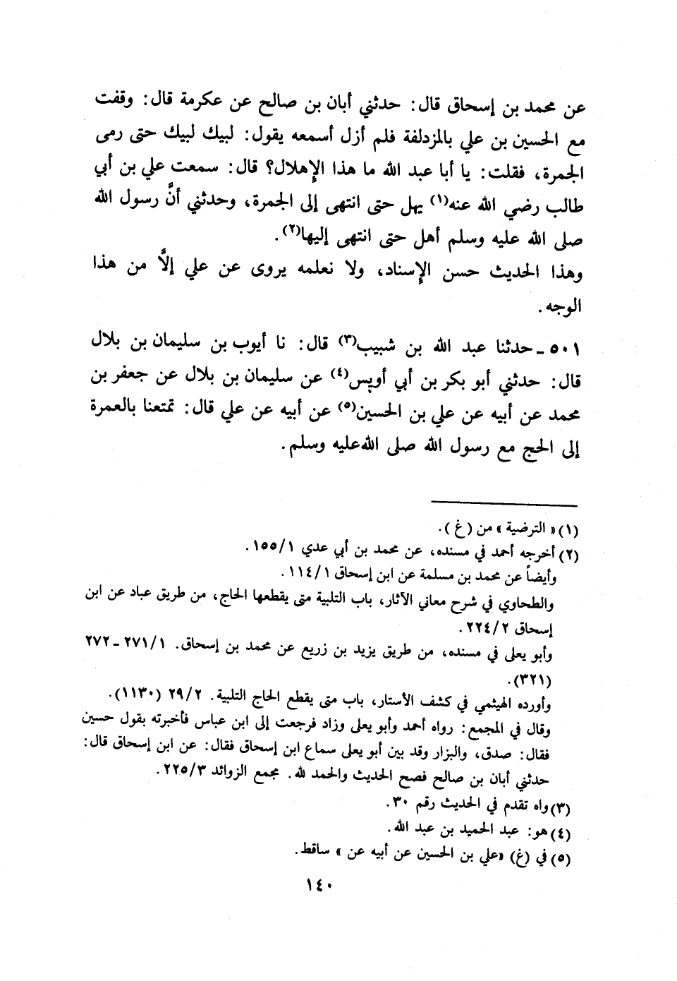 501 - حَدَّثَنَا عَبْدُ اللَّهِ بْنُ شَبِيبٍ، قَالَ: نا أَيُّوبُ بْنُ سُلَيْمَانَ بْنِ بِلَالٍ، قَالَ: حَدَّثَنِي أَبُو بَكْرِ بْنُ أَبِي أُوَيْسٍ، عَنْ سُلَيْمَانَ بْنِ بِلَالٍ، عَنْ جَعْفَرِ بْنِ مُحَمَّدٍ، عَنْ أَبِيهِ، عَنْ عَلِيِّ بْنِ الْحُسَيْنِ، عَنْ أَبِيهِ، عَنْ عَلِيٍّ، قَالَ: «§تَمَتَّعْنَا بِالْعُمْرَةِ إِلَى الْحَجِّ مَعَ رَسُولِ اللَّهِ صَلَّى اللهُ عَلَيْهِ وَسَلَّمَ» -[141]-، وَهَذَا الْكَلَامُ قَدْ رُوِيَ عَنْ عَلِيٍّ، وَهَذَا الْإِسْنَادُ أَحْسَنُ إِسْنَادًا يُرْوَى عَنْ عَلِيٍّ فِي ذَلِكَ