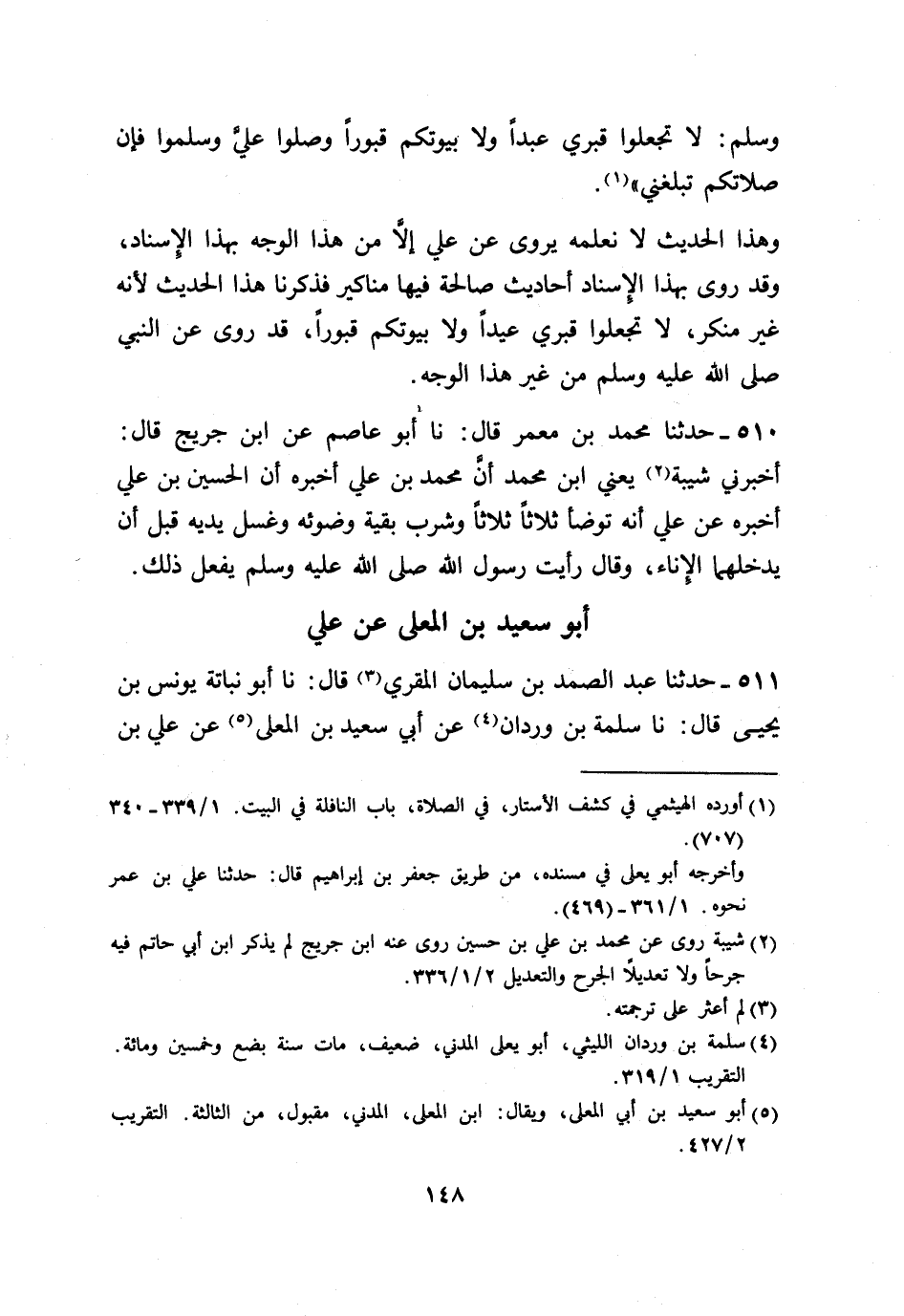 511 - حَدَّثَنَا عَبْدُ الصَّمَدِ بْنُ سُلَيْمَانَ الْمُقْرِئُ، قَالَ: نا أَبُو نُبَاتَةَ يُونُسُ بْنُ يَحْيَى، قَالَ: نا سَلَمَةُ بْنُ وَرْدَانَ، عَنْ أَبِي سَعِيدِ بْنِ أَبِي الْمُعَلَّى، عَنْ عَلِيِّ بْنِ -[149]- أَبِي طَالِبٍ رَضِيَ اللَّهُ عَنْهُ، وَأَبِي هُرَيْرَةَ، عَنِ النَّبِيِّ صَلَّى اللهُ عَلَيْهِ وَسَلَّمَ، قَالَ: «§مَا بَيْنَ قَبْرِي وَمِنْبَرِي» أَوْ قَالَ: «بَيْتِي وَمِنْبَرِي رَوْضَةٌ مِنْ رِيَاضِ الْجَنَّةِ»