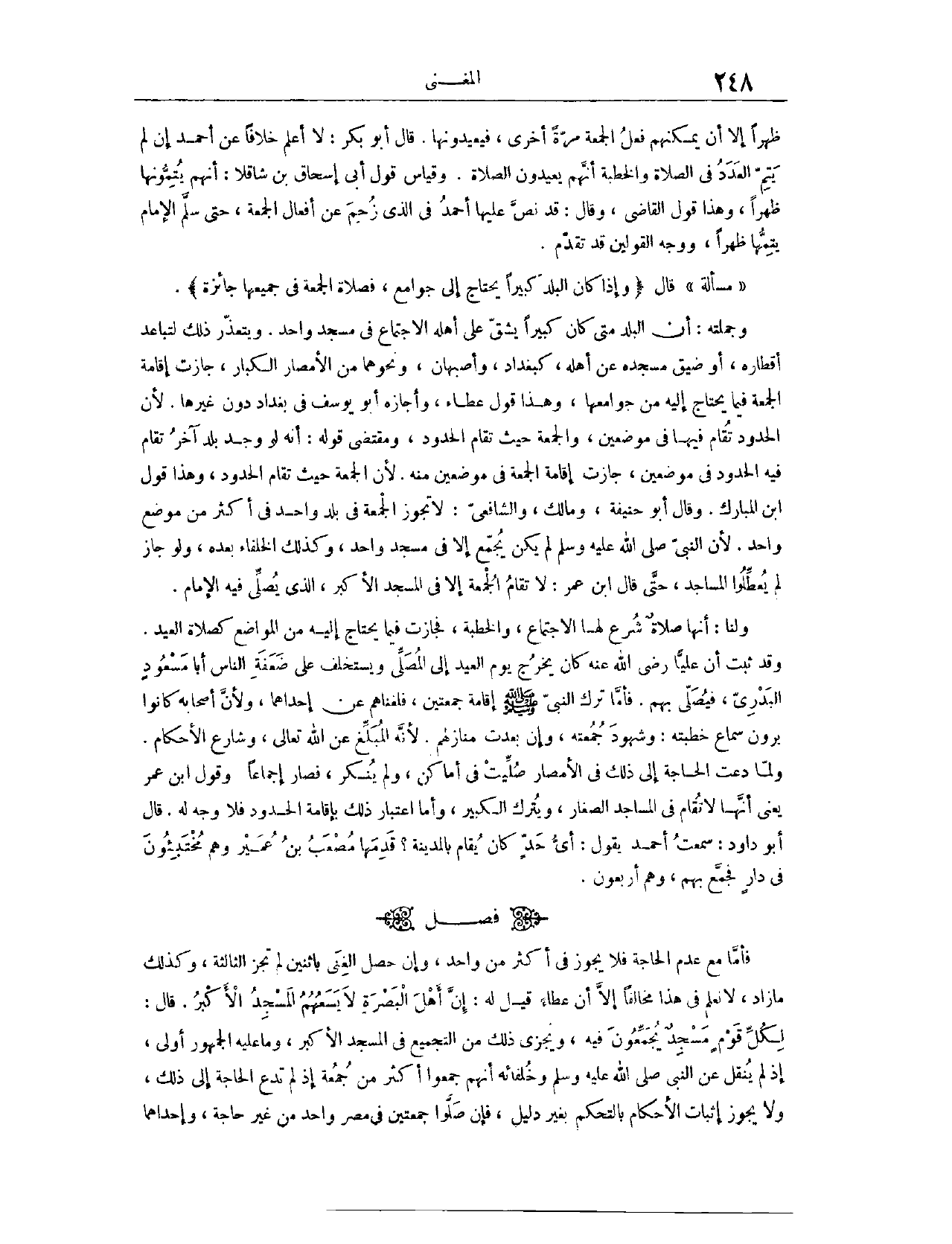 وَقَوْلُ ابْنِ عُمَرَ، يَعْنِي أَنَّهَا لَا تُقَامُ فِي الْمَسَاجِدِ الصِّغَارِ وَيُتْرَكُ الْكَبِيرُ، وَأَمَّا اعْتِبَارُ ذَلِكَ بِإِقَامَةِ الْحُدُودِ، فَلَا وَجْهَ لَهُ. قَالَ أَبُو دَاوُد: سَمِعْتُ أَحْمَدَ يَقُولُ: أَيُّ حَدٍّ كَانَ يُقَامُ بِالْمَدِينَةِ، قَدِمَهَا مُصْعَبُ بْنُ عُمَيْرٍ وَهُمْ مُخْتَبِئُونَ فِي دَارٍ، فَجَمَّعَ بِهِمْ وَهُمْ أَرْبَعُونَ. (١٣٤٦)