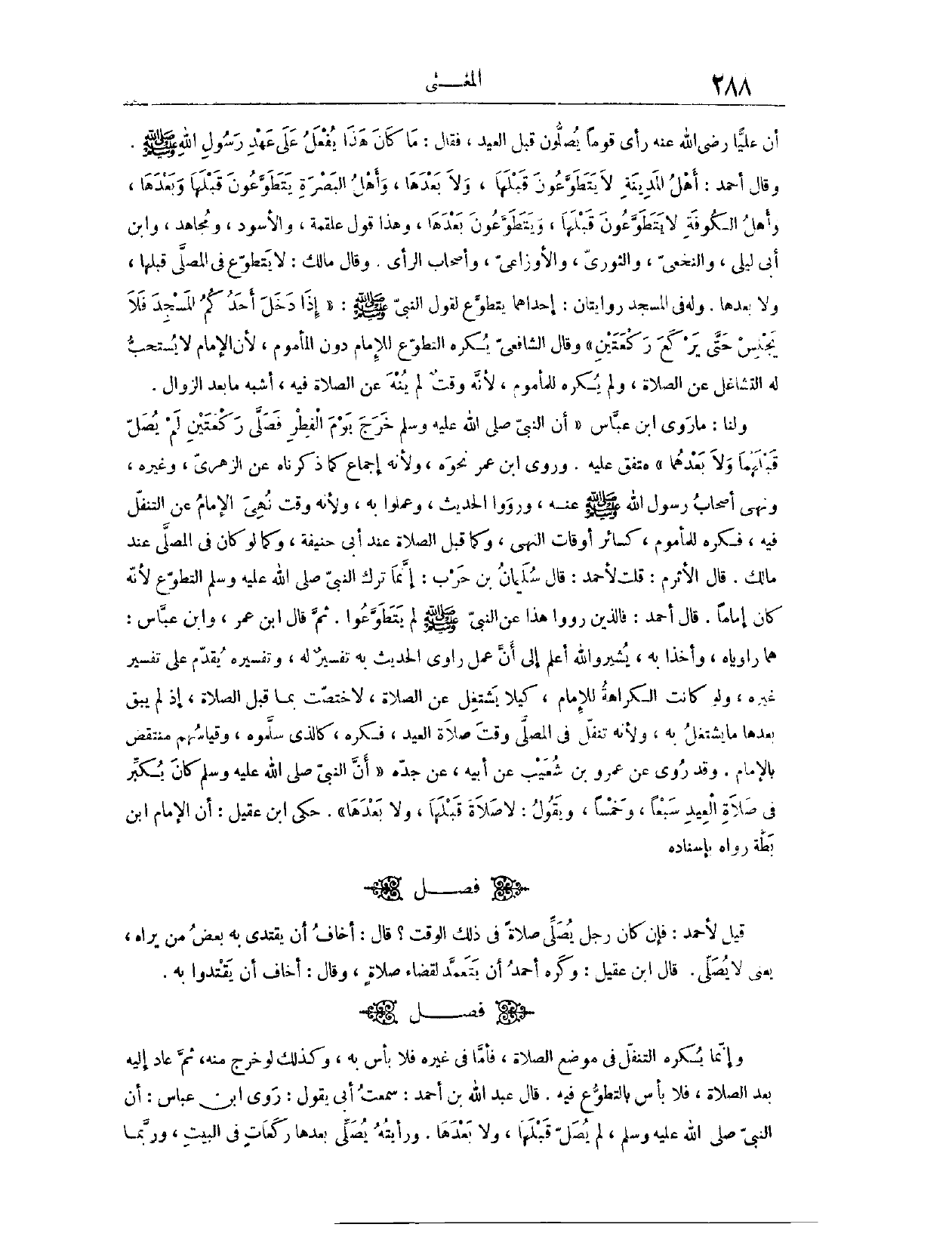 (١٤٢٣) فَصْلٌ: قِيلَ لِأَحْمَدَ: فَإِنْ كَانَ رَجُلٌ يُصَلِّي صَلَاةً فِي ذَلِكَ الْوَقْتِ؟ قَالَ: أَخَافُ أَنْ يَقْتَدِيَ بِهِ بَعْضُ مَنْ يَرَاهُ. يَعْنِي لَا يُصَلِّي. قَالَ ابْنُ عَقِيلٍ: وَكَرِهَ أَحْمَدُ أَنْ يَتَعَمَّدَ لِقَضَاءِ، صَلَاةٍ، وَقَالَ: أَخَافُ أَنْ يَقْتَدُوا بِهِ (١٤٢٤) .