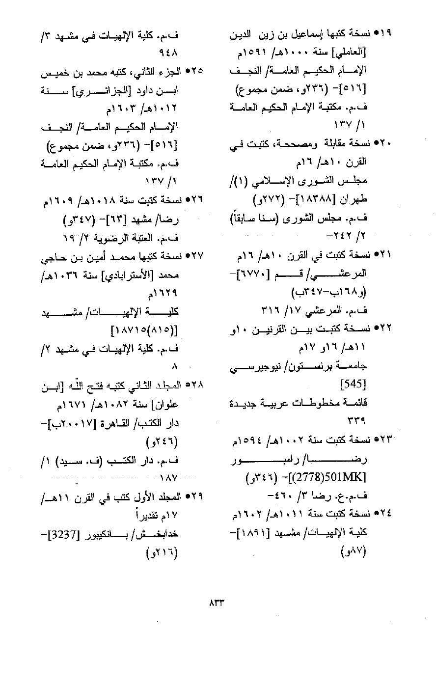 93( نسخة كتبها محمد بن محمد علي (الطهراني( سنة 1252هـ/ 1836م