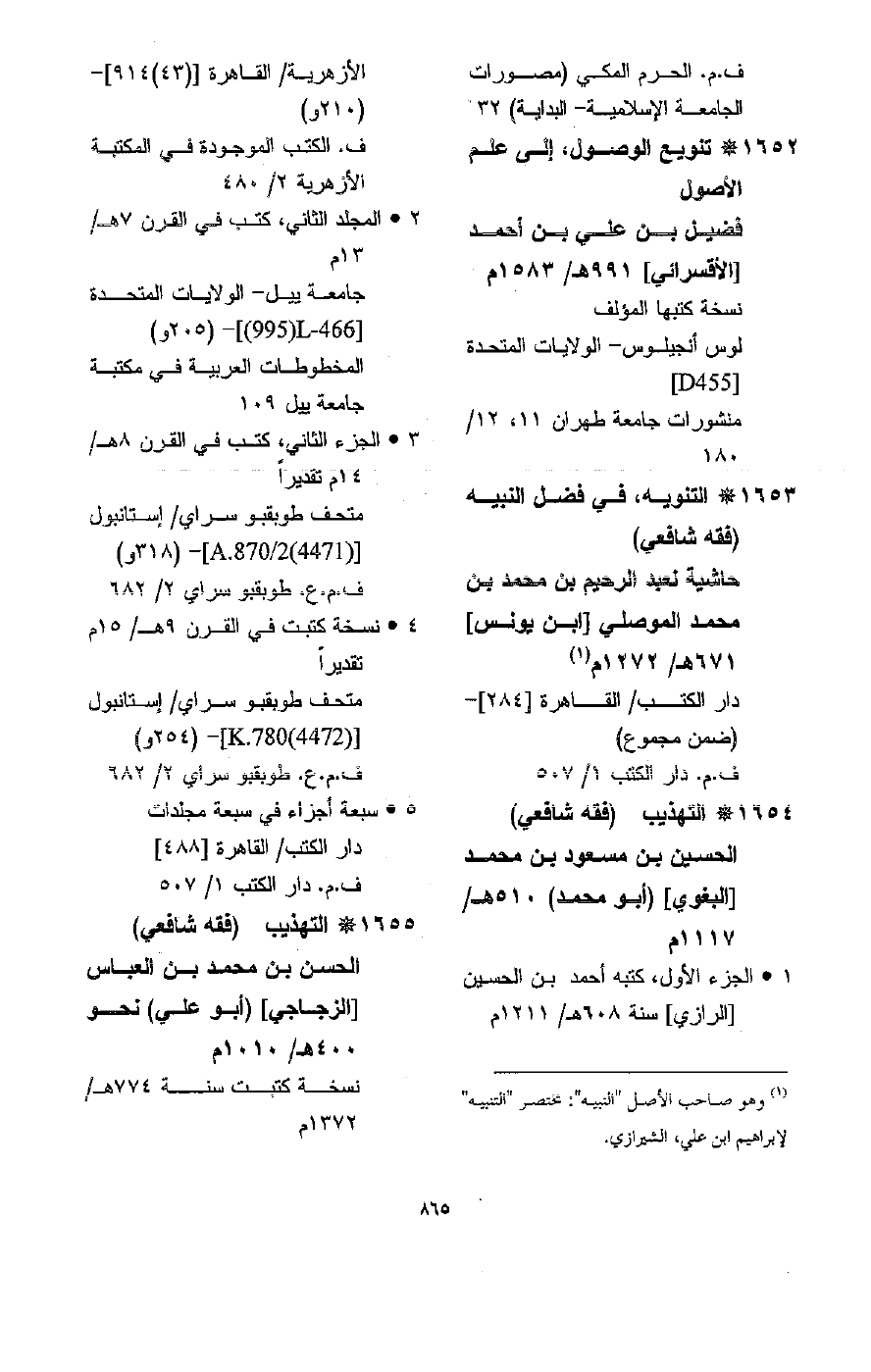 (1) ورد في الفهرس أنها بخط المؤلف وهذا يتناقض مع تاريخ النسخ لأنه توفي قبل ذلك.