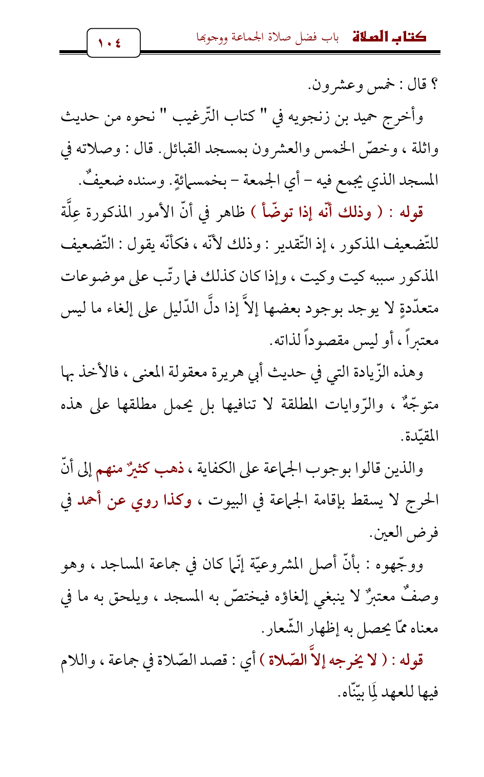 وأخرج حميد بن زنجويه في " كتاب التّرغيب " نحوه من حديث واثلة، وخصّ الخمس والعشرون بمسجد القبائل. قال: وصلاته في المسجد الذي يجمع فيه - أي الجمعة - بخمسمائةٍ. وسنده ضعيفٌ.