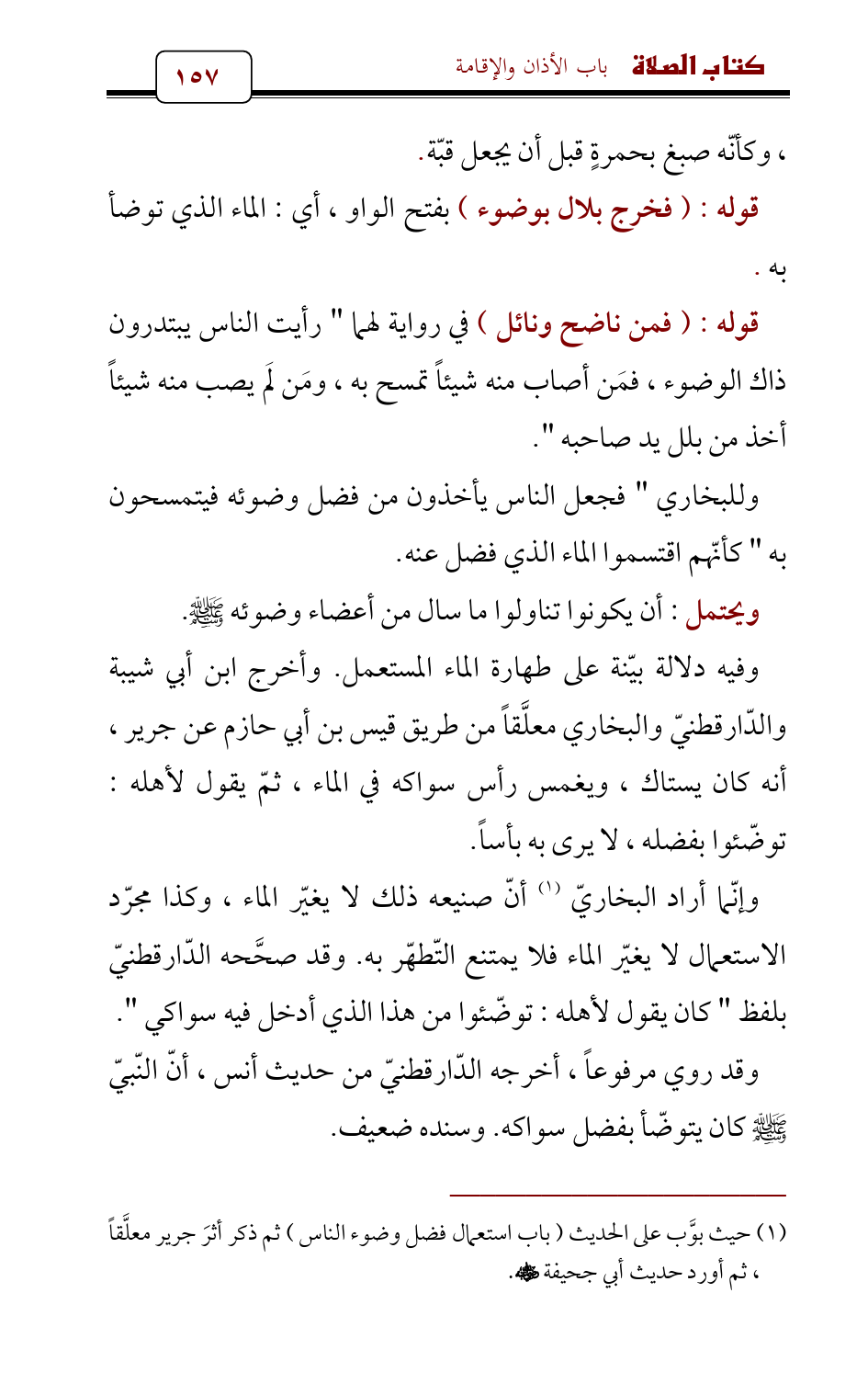 (¬1) حيث بوَّب على الحديث (باب استعمال فضل وضوء الناس) ثم ذكر أثرَ جرير معلَّقاً , ثم أورد حديث أبي جحيفة - رضي الله عنه -.