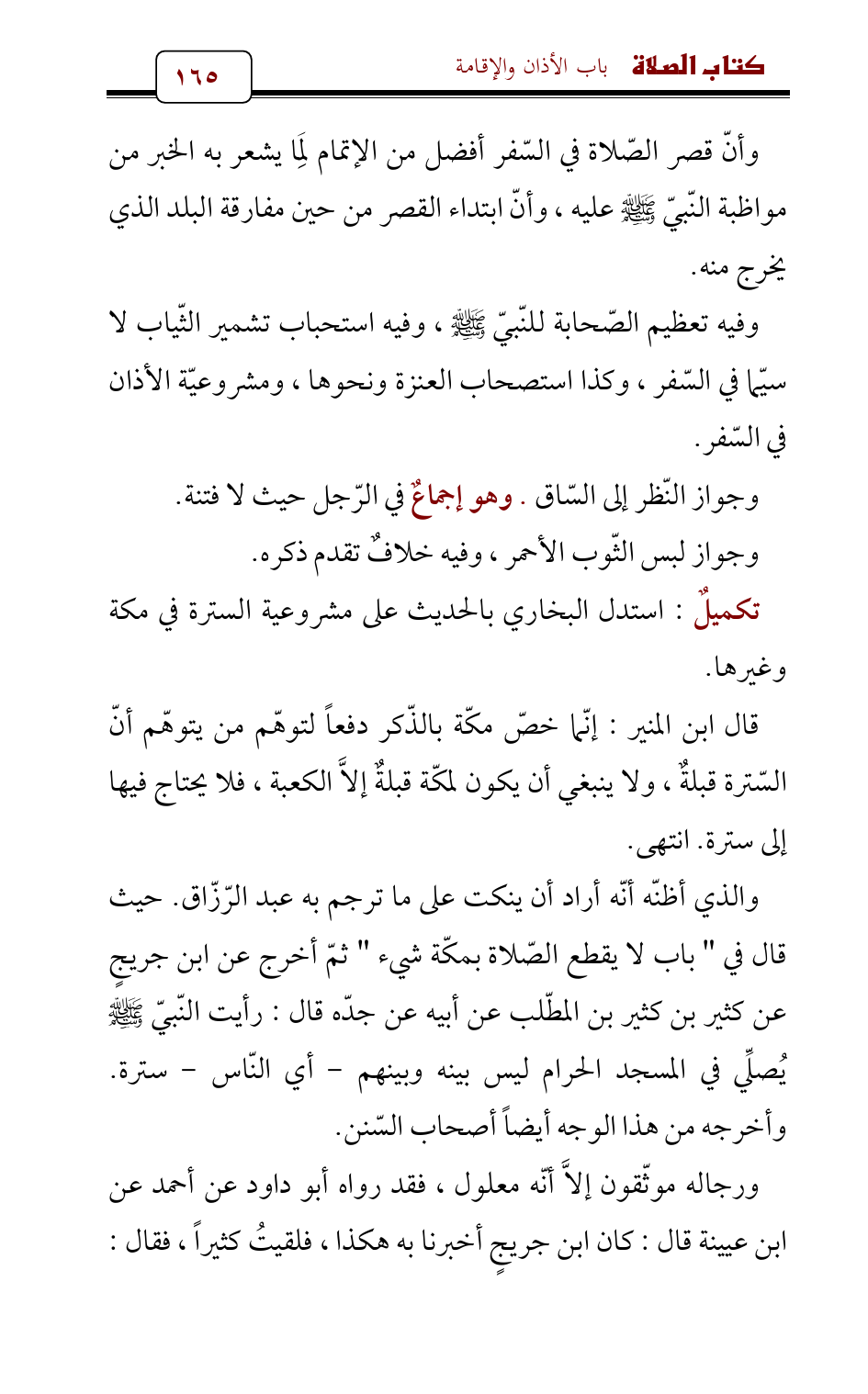 وأنّ قصر الصّلاة في السّفر أفضل من الإتمام لِمَا يشعر به الخبر من مواظبة النّبيّ - صلى الله عليه وسلم - عليه , وأنّ ابتداء القصر من حين مفارقة البلد الذي يخرج منه.