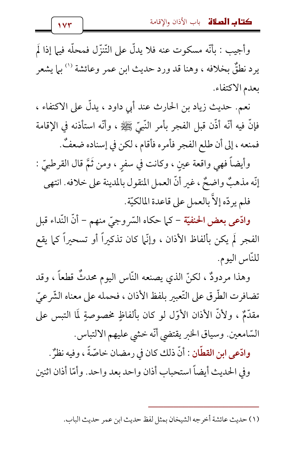 وهذا مردودٌ، لكنّ الذي يصنعه النّاس اليوم محدثٌ قطعاً، وقد تضافرت الطّرق على التّعبير بلفظ الأذان، فحمله على معناه الشّرعيّ مقدّمٌ، ولأنّ الأذان الأوّل لو كان بألفاظٍ مخصوصةٍ لَمَا التبس على السّامعين. وسياق الخبر يقتضي أنّه خشي عليهم الالتباس.