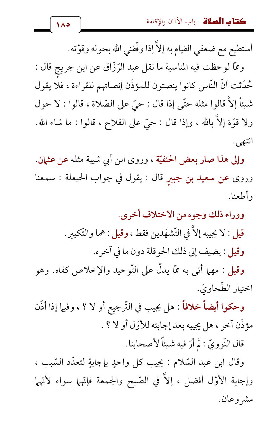 وإلى هذا صار بعض الحنفيّة , وروى ابن أبي شيبة مثله عن عثمان. وروى عن سعيد بن جبيرٍ قال: يقول في جواب الحيعلة: سمعنا وأطعنا.