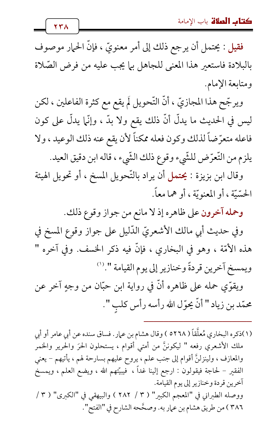 ويقوّي حمله على ظاهره أنّ في رواية ابن حبّان من وجهٍ آخر عن محمّد بن زياد " أنّ يحوّل الله رأسه رأس كلبٍ ".