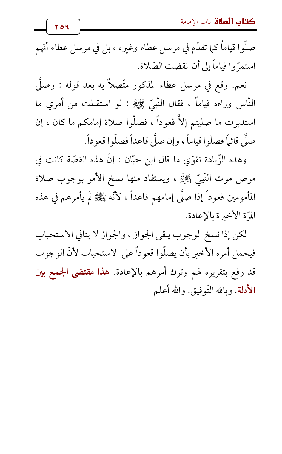لكن إذا نسخ الوجوب يبقى الجواز، والجواز لا ينافي الاستحباب فيحمل أمره الأخير بأن يصلّوا قعوداً على الاستحباب لأنّ الوجوب قد رفع بتقريره لهم وترك أمرهم بالإعادة. هذا مقتضى الجمع بين الأدلة. وبالله التّوفيق. والله أعلم