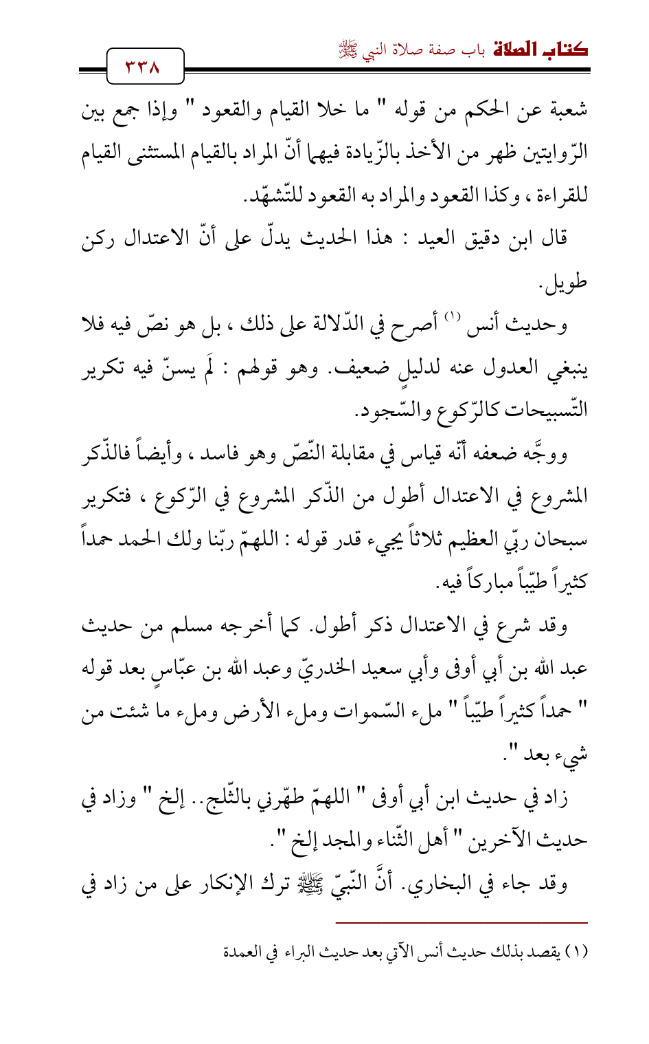 قال ابن دقيق العيد: هذا الحديث يدلّ على أنّ الاعتدال ركن طويل.