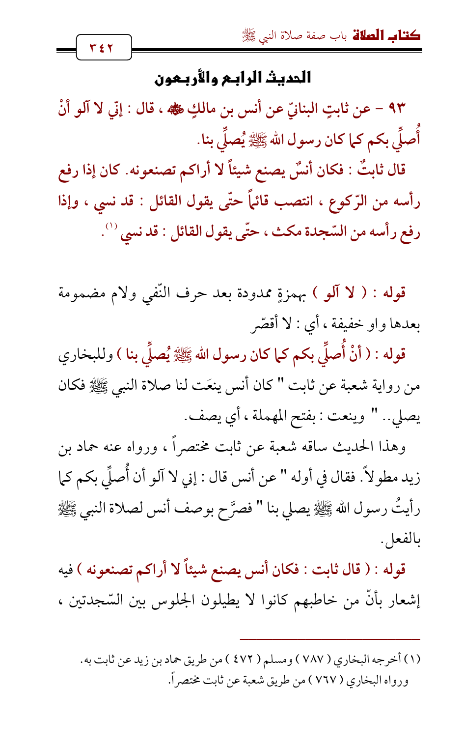 93 - عن ثابتٍ البنانيّ عن أنس بن مالكٍ - رضي الله عنه - , قال: إنّي لا آلو أنْ أُصلِّي بكم كما كان رسول الله - صلى الله عليه وسلم - يُصلِّي بنا.